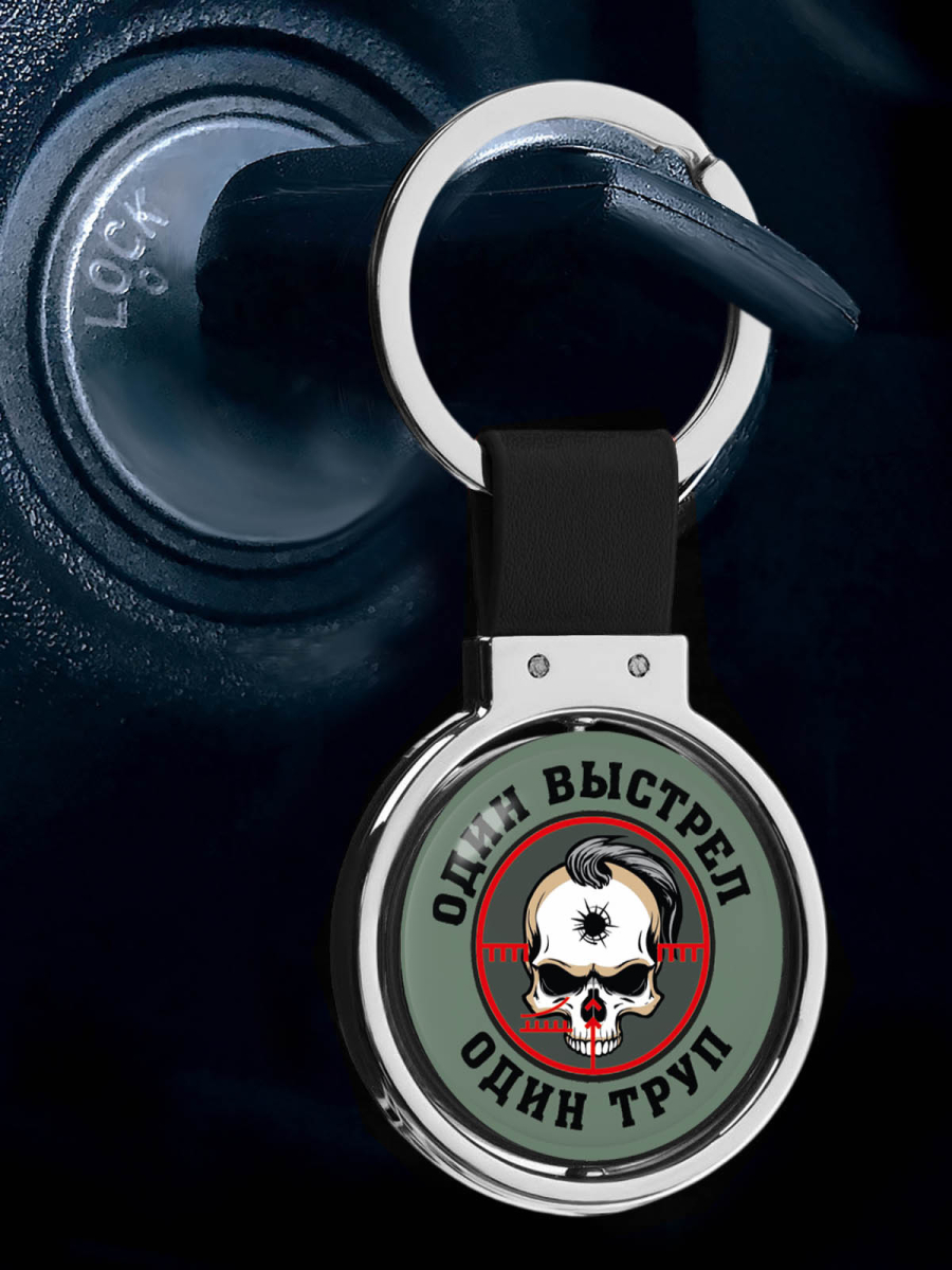 Двухсторонний Брелок для ключей Один выстрел – один труп (Черный)