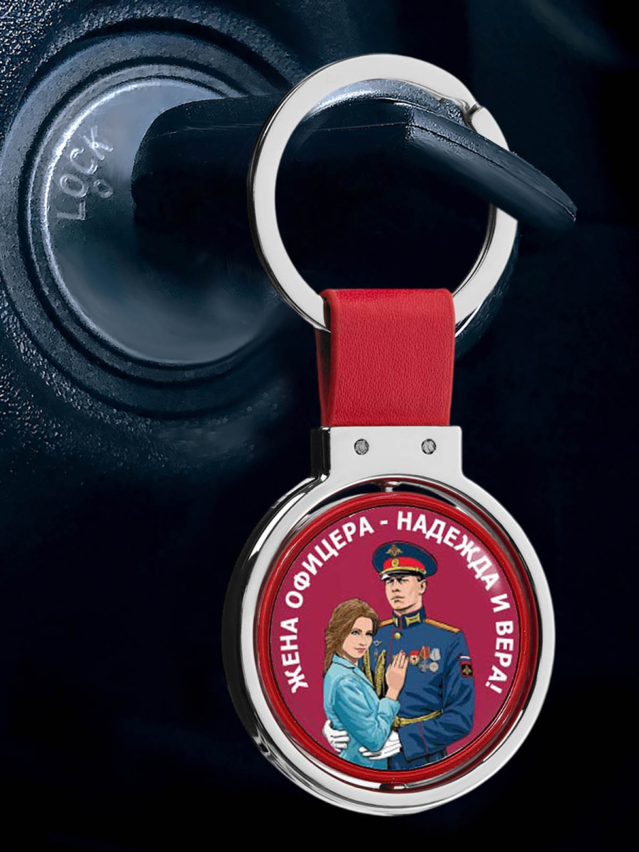 Купить интересный Двухсторонний Брелок для ключей Жена офицера – надежда и вера! (Красный) с доставкой по всей РФ (Почта или Курьер) и 100%-я гарантия. Заходите, заказывайте