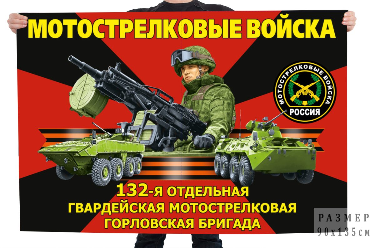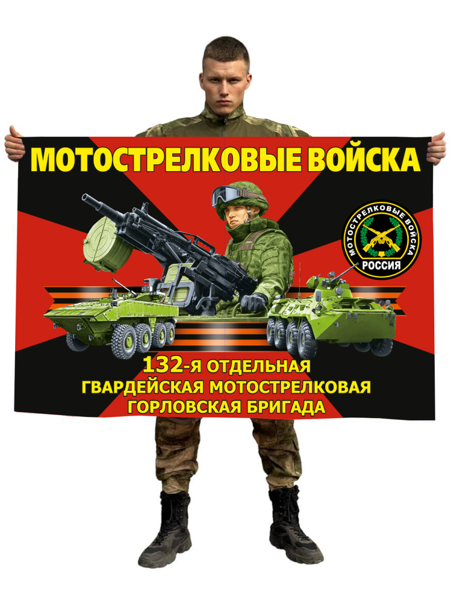 Купить Флаг 132-й отдельной гвардейской мотострелковой Горловской бригады в интернет-магазине. Доставка по РФ, Москве, Санкт-Петербургу и д.р. Работаем с 10 до 18. Магазин Атрибутия / atributia.ru
