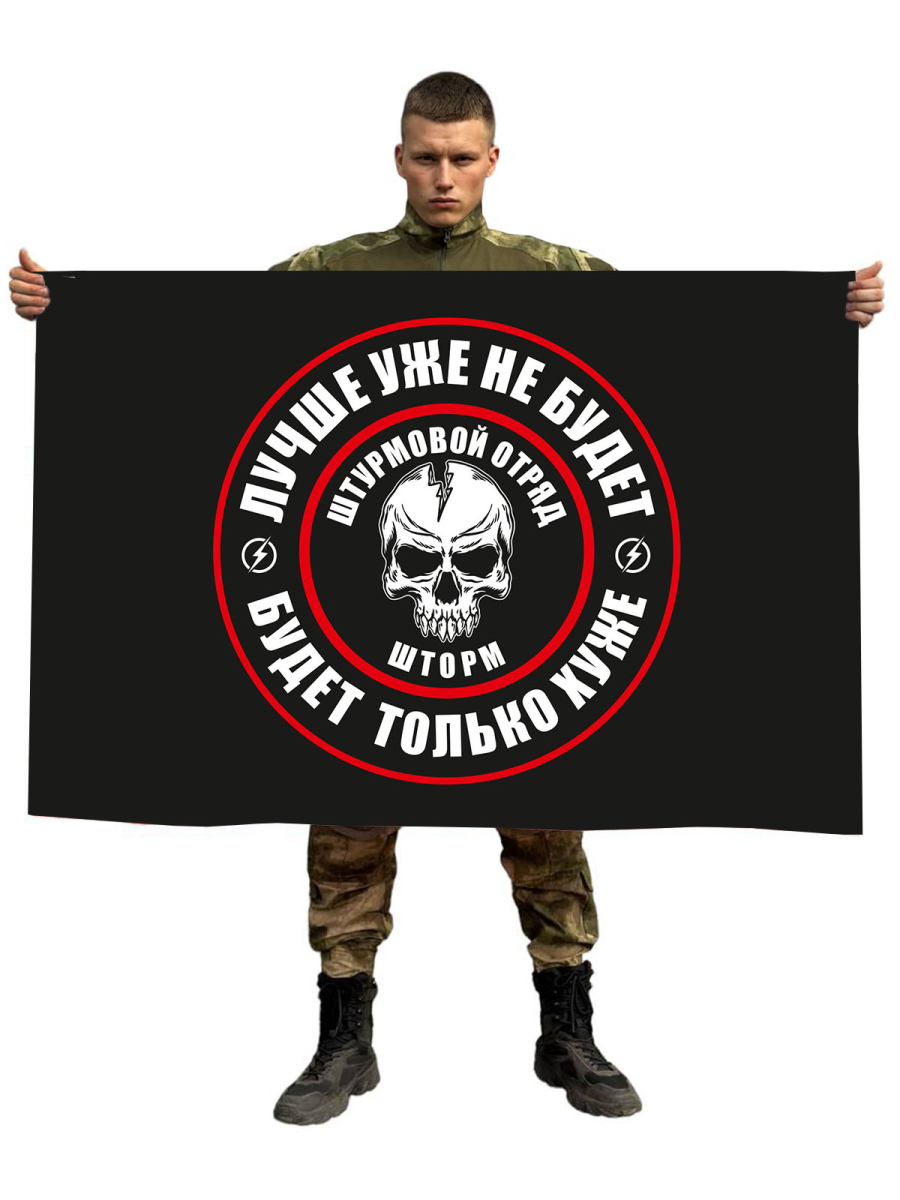 Купить Флаг штурмовой отряд "Шторм" - Лучше уже не будет - будет только хуже в интернет-магазине. Доставка по РФ, Москве, Санкт-Петербургу и д.р. Работаем с 10 до 18. Магазин Атрибутия / atributia.ru