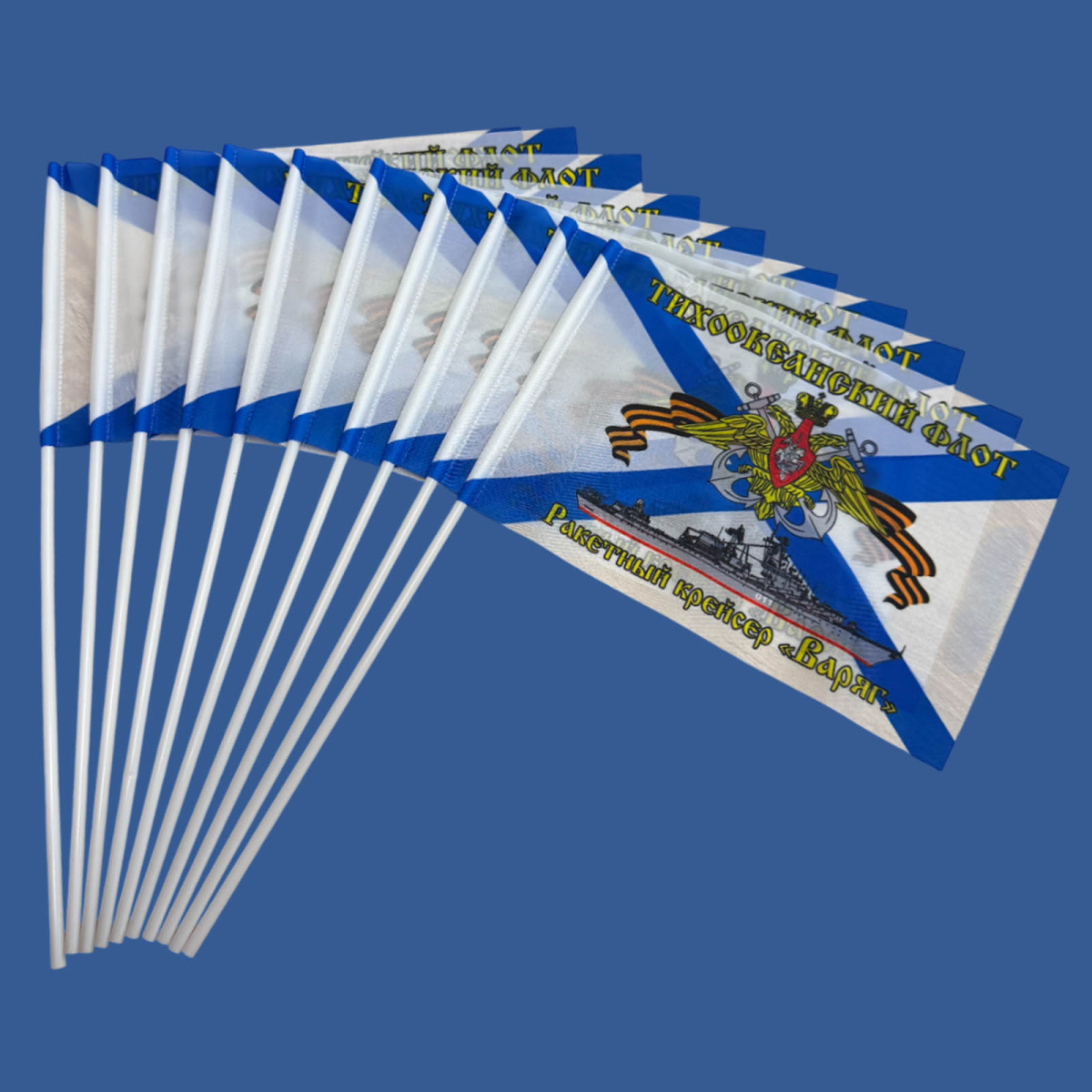 Купить Флажок настольный Ракетный крейсер «Варяг» (10 штук) в интернет-магазине. Доставка по РФ, Москве, Санкт-Петербургу и д.р. Работаем с 10 до 18. Магазин Атрибутия / atributia.ru