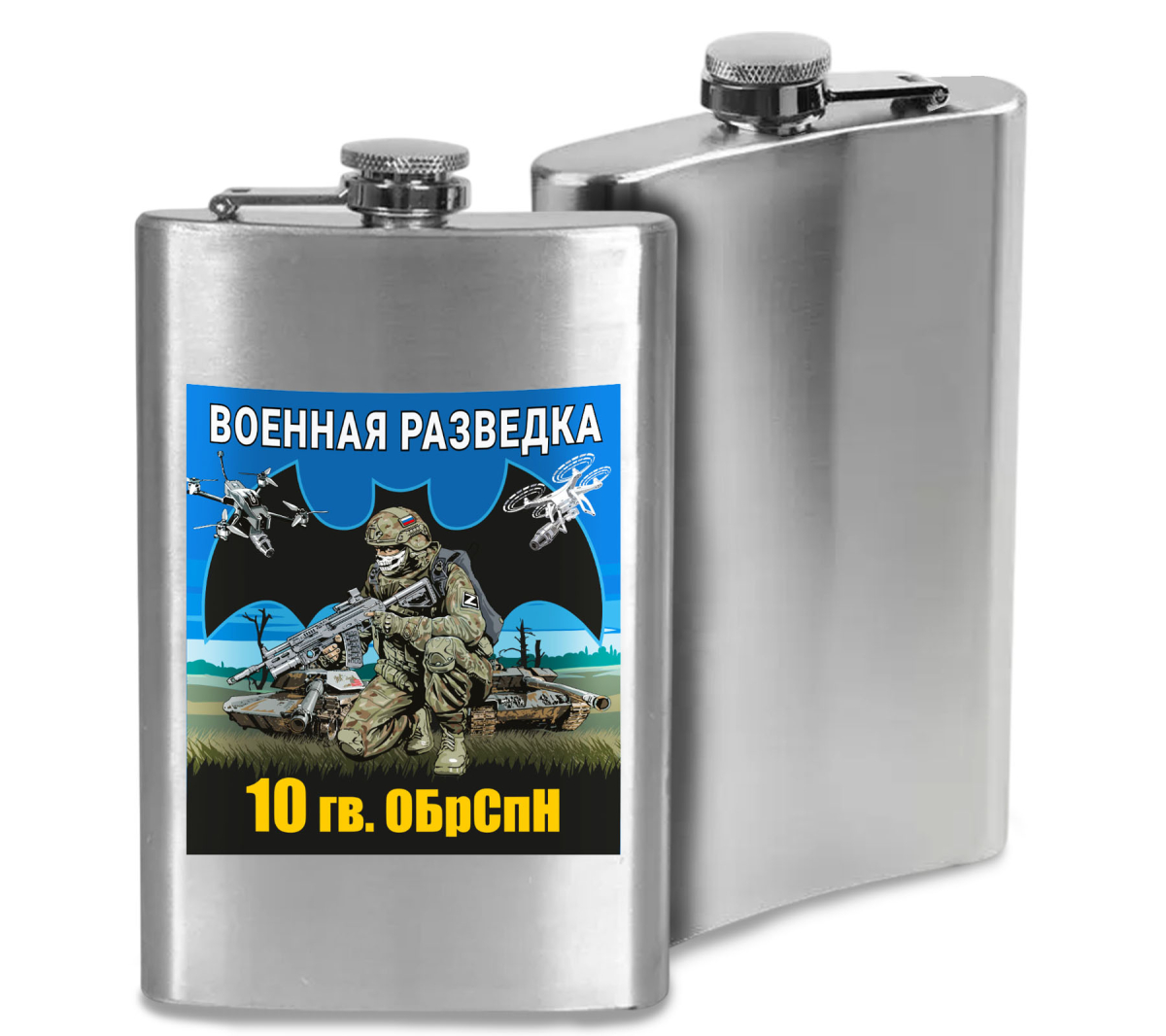 Карманная фляжка 10 гв. ОБрСпН можно купить от 800 руб., Армейские фляжки в Атрибутии с доставкой по РФ
