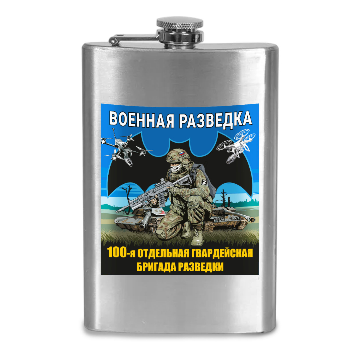 Карманная фляжка 100 гв. отдельная бригада разведки можно купить от 800 руб., Армейские фляжки в Атрибутии с доставкой по РФ
