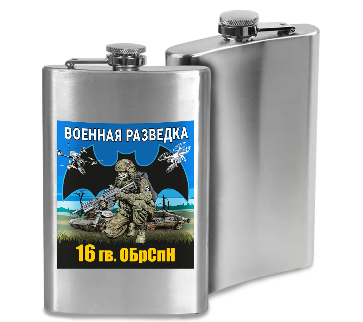 Карманная фляжка 16 гв. ОБрСпН можно купить от 800 руб., Армейские фляжки в Атрибутии с доставкой по РФ