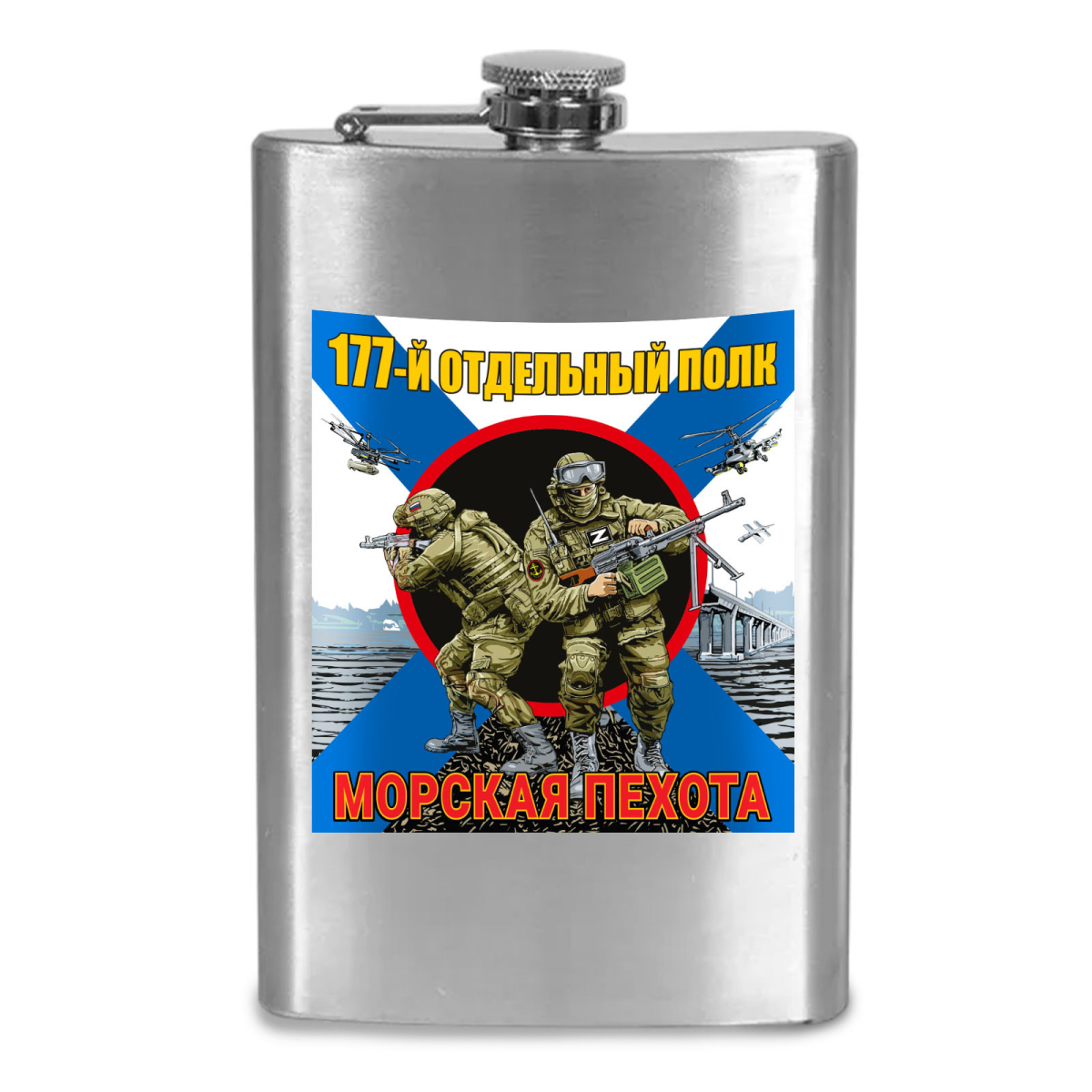 Карманная фляжка 177 отдельный полк Морской пехоты можно купить от 800 руб., Армейские фляжки в Атрибутии с доставкой по РФ