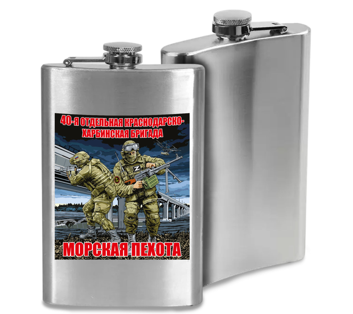 Карманная фляжка 40 ОБрМП можно купить от 800 руб., Армейские фляжки в Атрибутии с доставкой по РФ