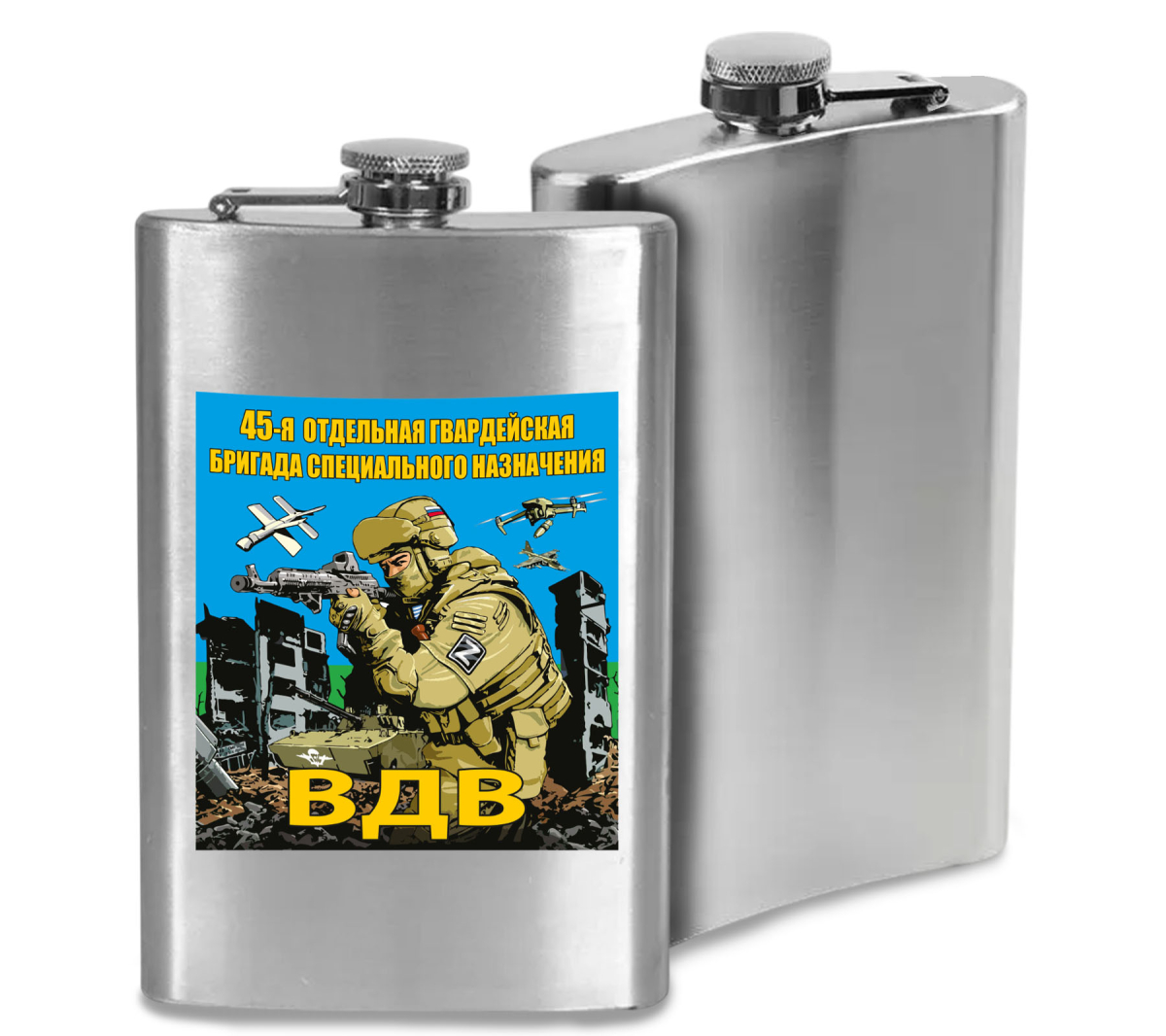 Карманная фляжка 45 гв. отдельная бригада специального назначения ВДВ можно купить от 800 руб., Армейские фляжки в Атрибутии с доставкой по РФ
