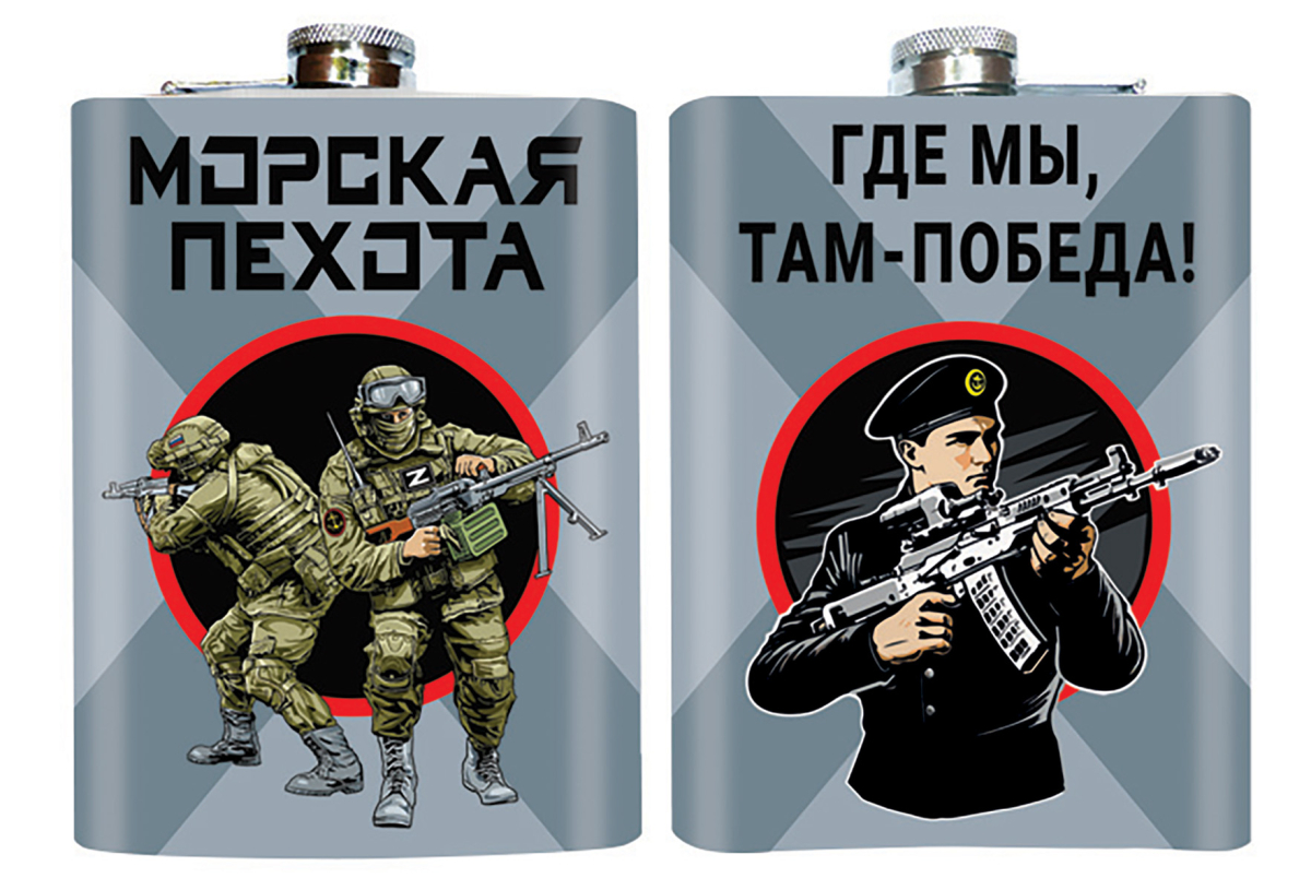 Карманная фляжка Где мы, там – Победа! Морская пехота можно купить от 900 руб., Армейские фляжки в Атрибутии с доставкой по РФ