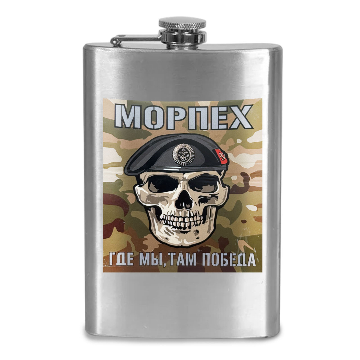 Карманная фляжка Морпех - Где мы, там Победа! можно купить от 800 руб., Армейские фляжки в Атрибутии с доставкой по РФ