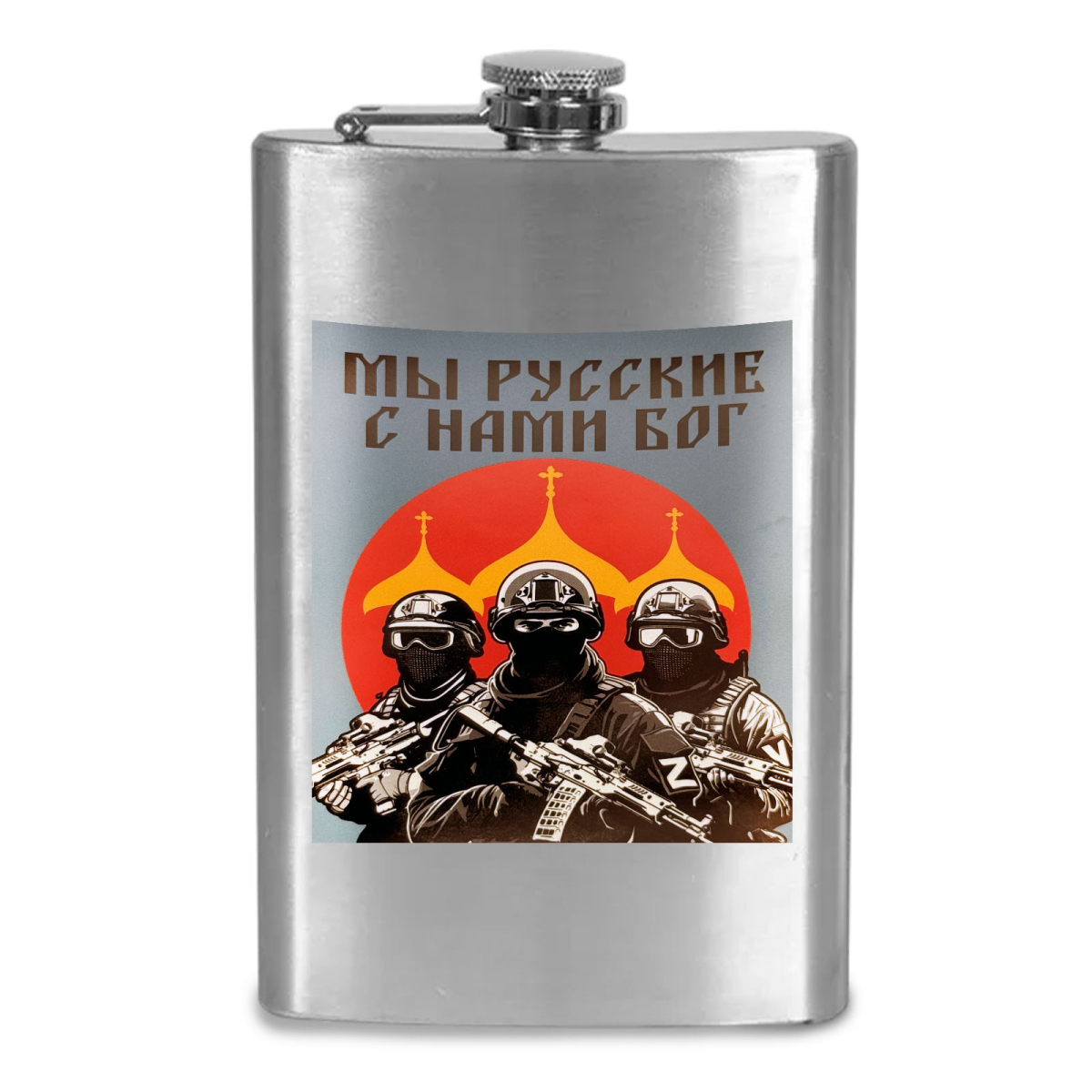 Карманная Фляжка Мы русские, с нами Бог можно купить от 800 руб., Армейские фляжки в Атрибутии с доставкой по РФ