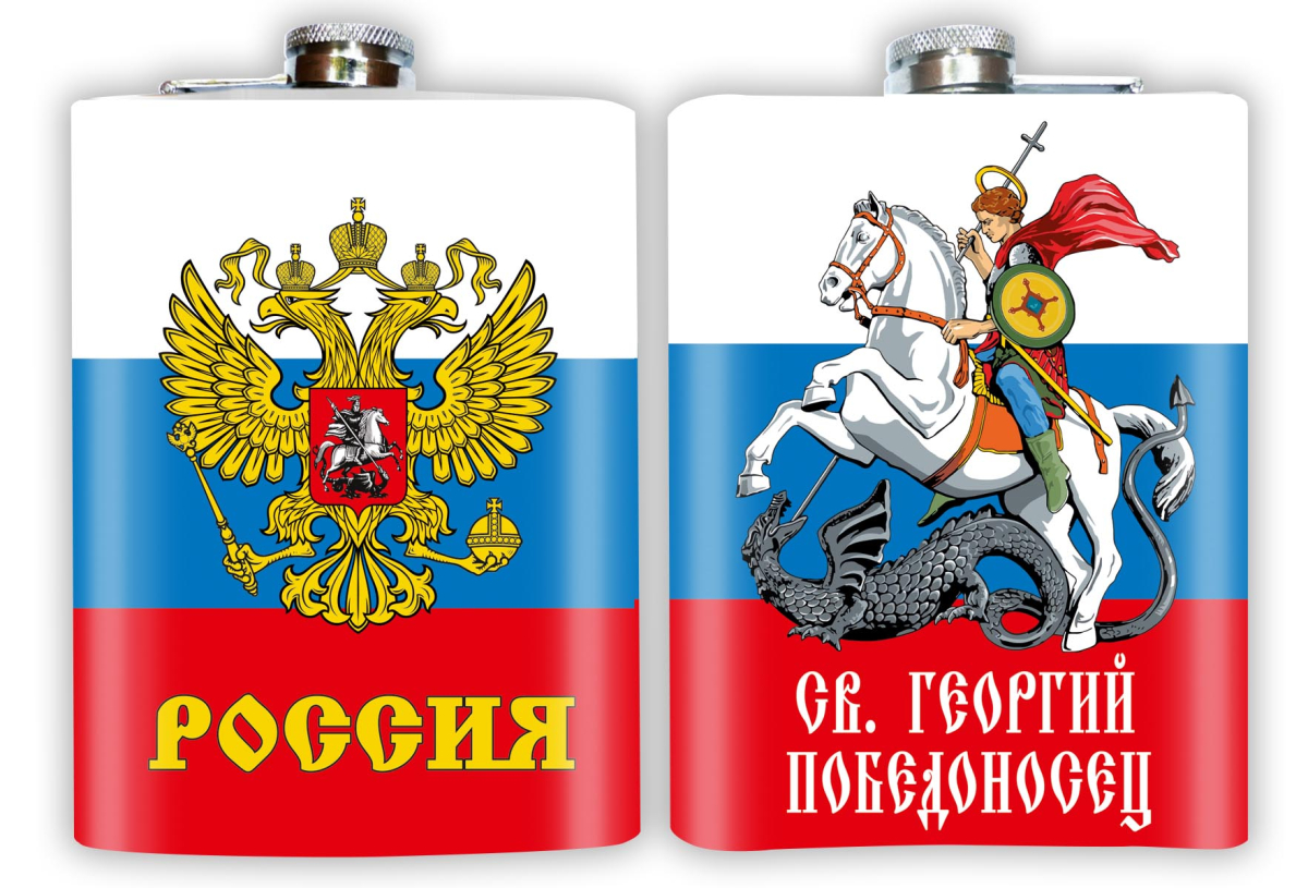 Карманная фляжка Россия Георгий Победоносец можно купить от 800 руб., Армейские фляжки в Атрибутии с доставкой по РФ
