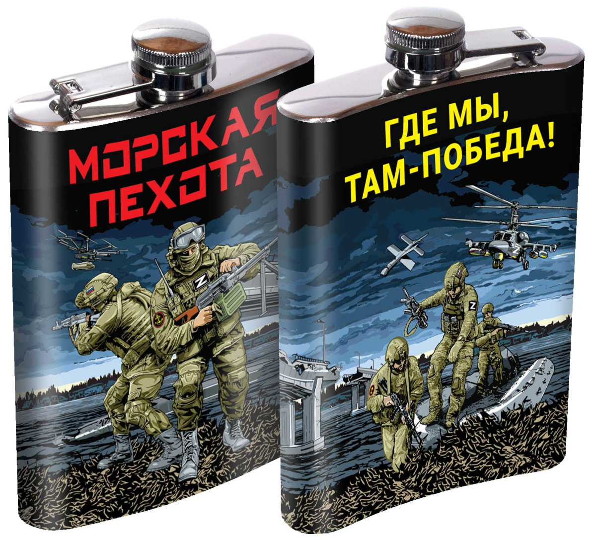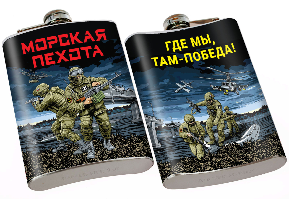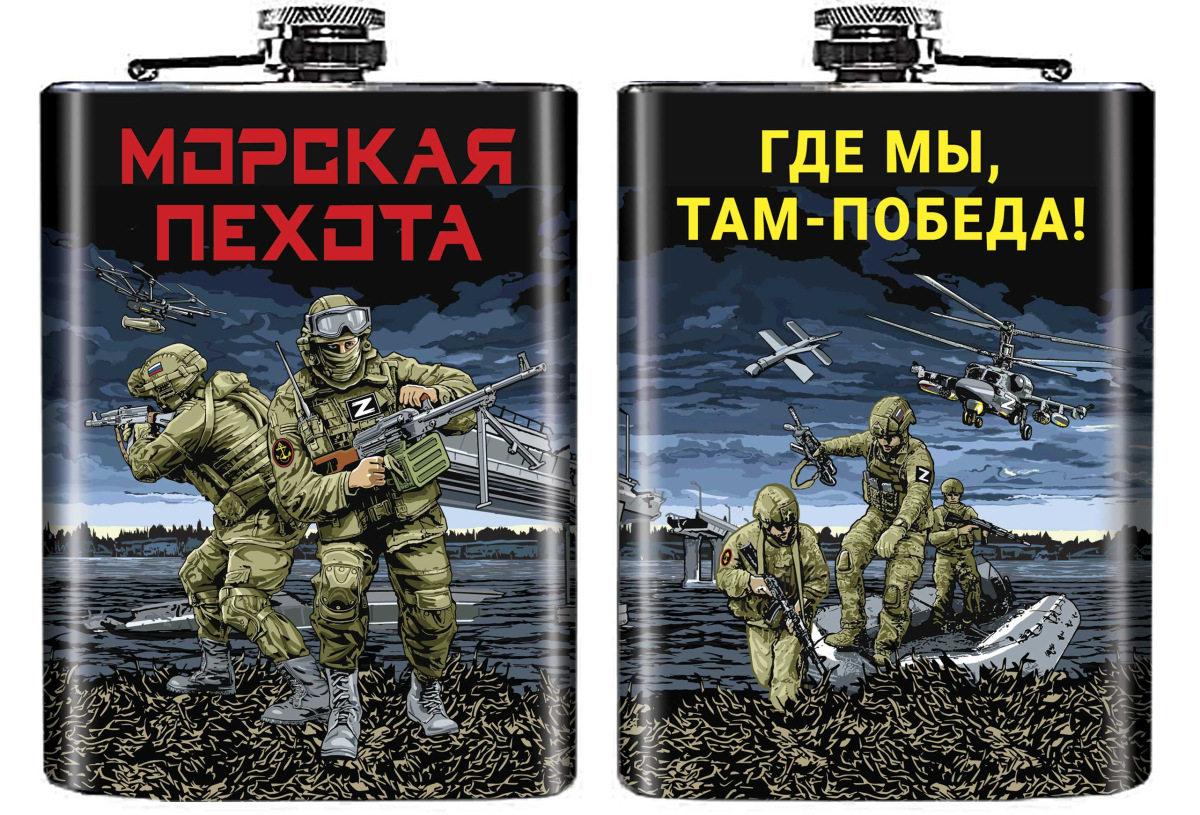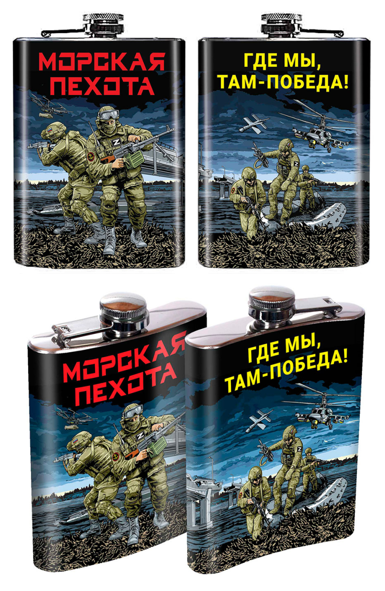 Карманная фляжка с символикой Морской пехоты Где мы, там – Победа! можно купить от 800 руб., Армейские фляжки в Атрибутии с доставкой по РФ