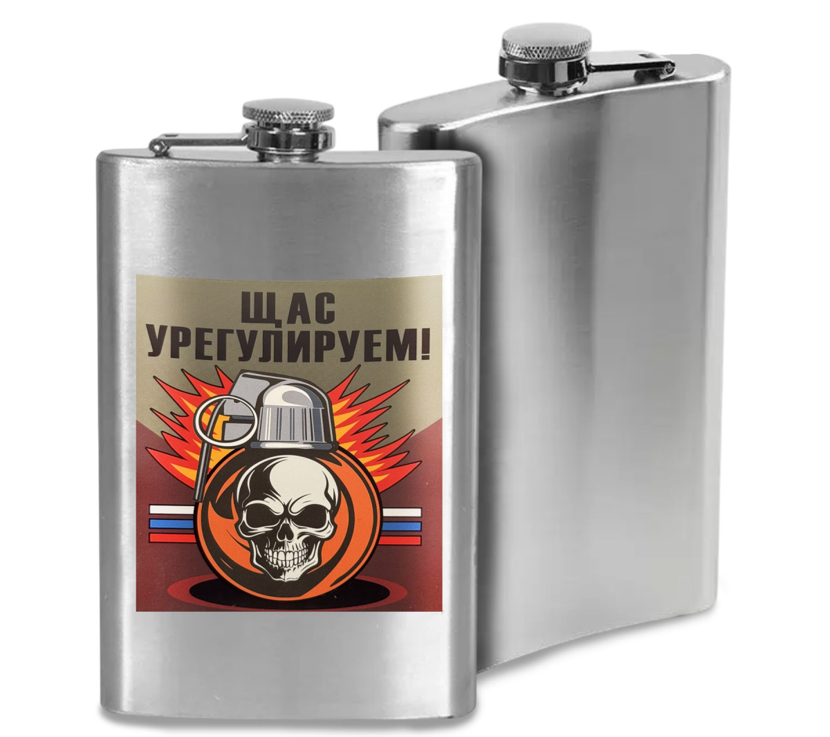 Карманная Фляжка Щас урегулируем можно купить от 800 руб., Армейские фляжки в Атрибутии с доставкой по РФ