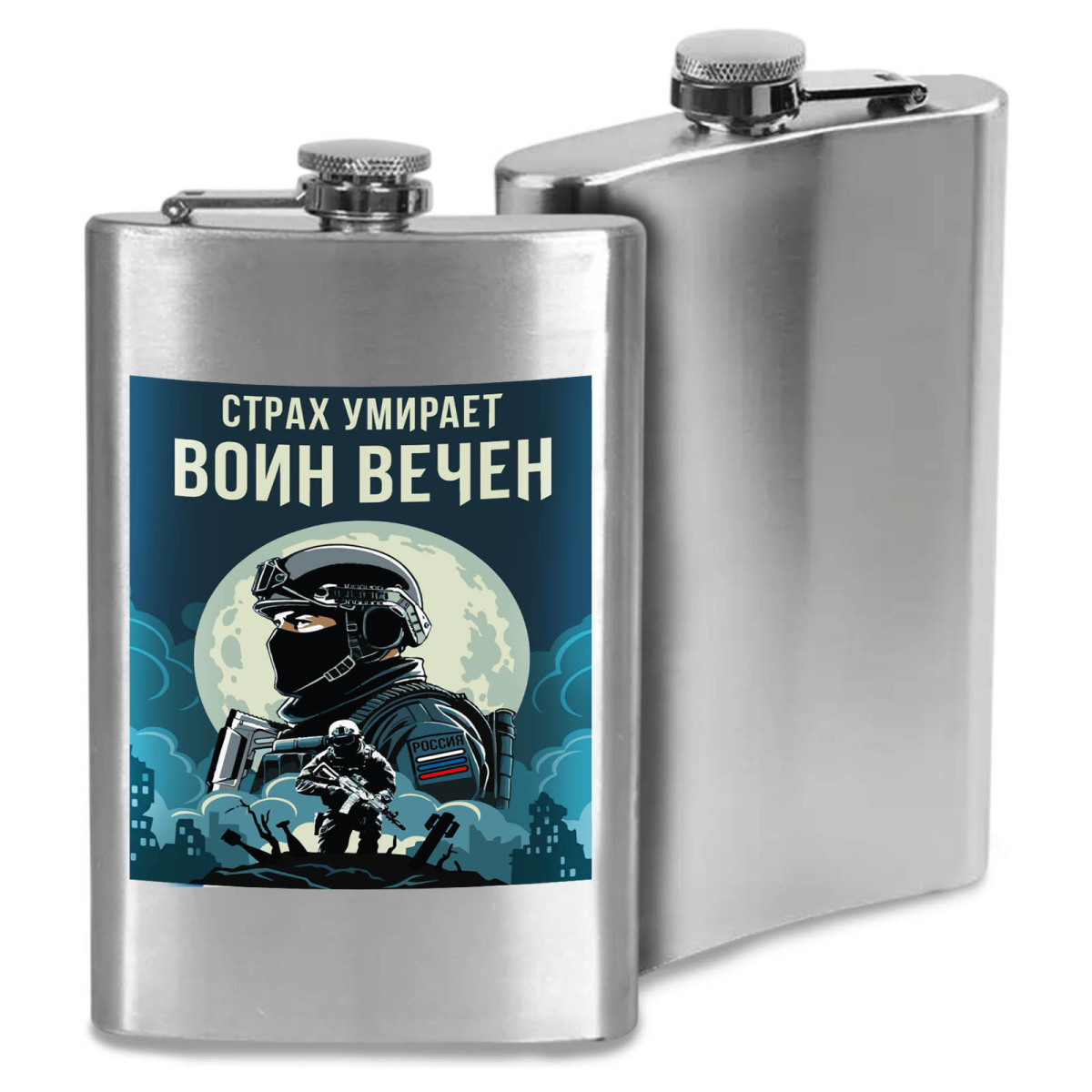 Карманная Фляжка Страх умирает – Воин вечен можно купить от 800 руб., Армейские фляжки в Атрибутии с доставкой по РФ