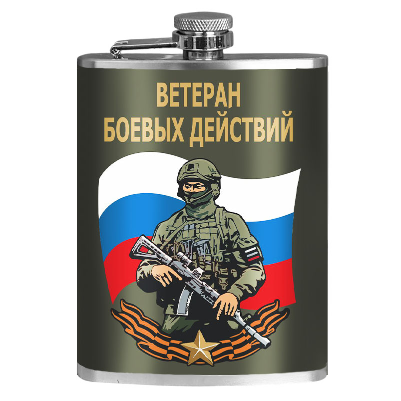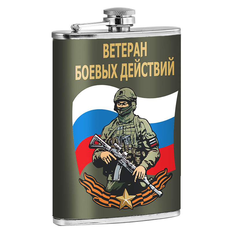 Карманная фляжка Ветеран боевых действий 260 мл; 9х15 см можно купить от 900 руб., Армейские фляжки в Атрибутии с доставкой по РФ