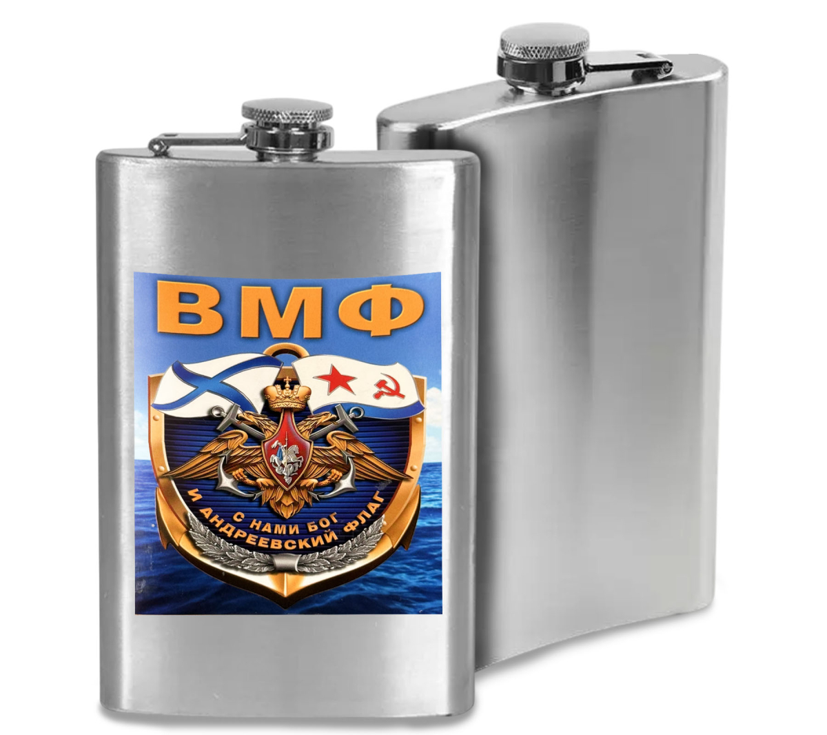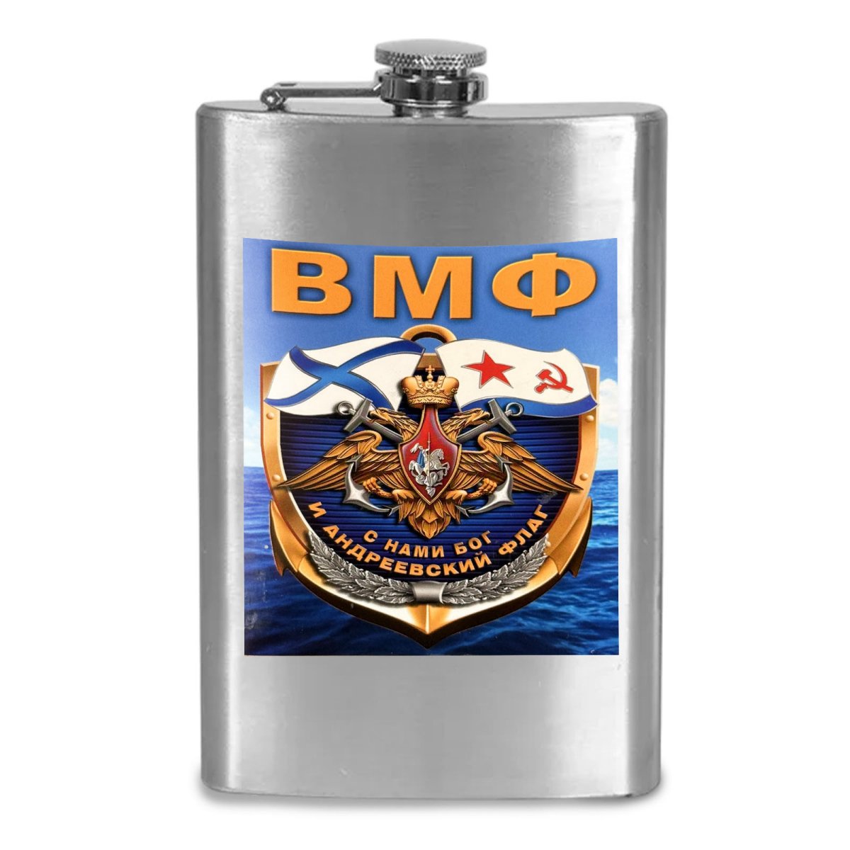 Карманная фляжка ВМФ С нами Бог и Андреевский флаг можно купить от 800 руб., Армейские фляжки в Атрибутии с доставкой по РФ