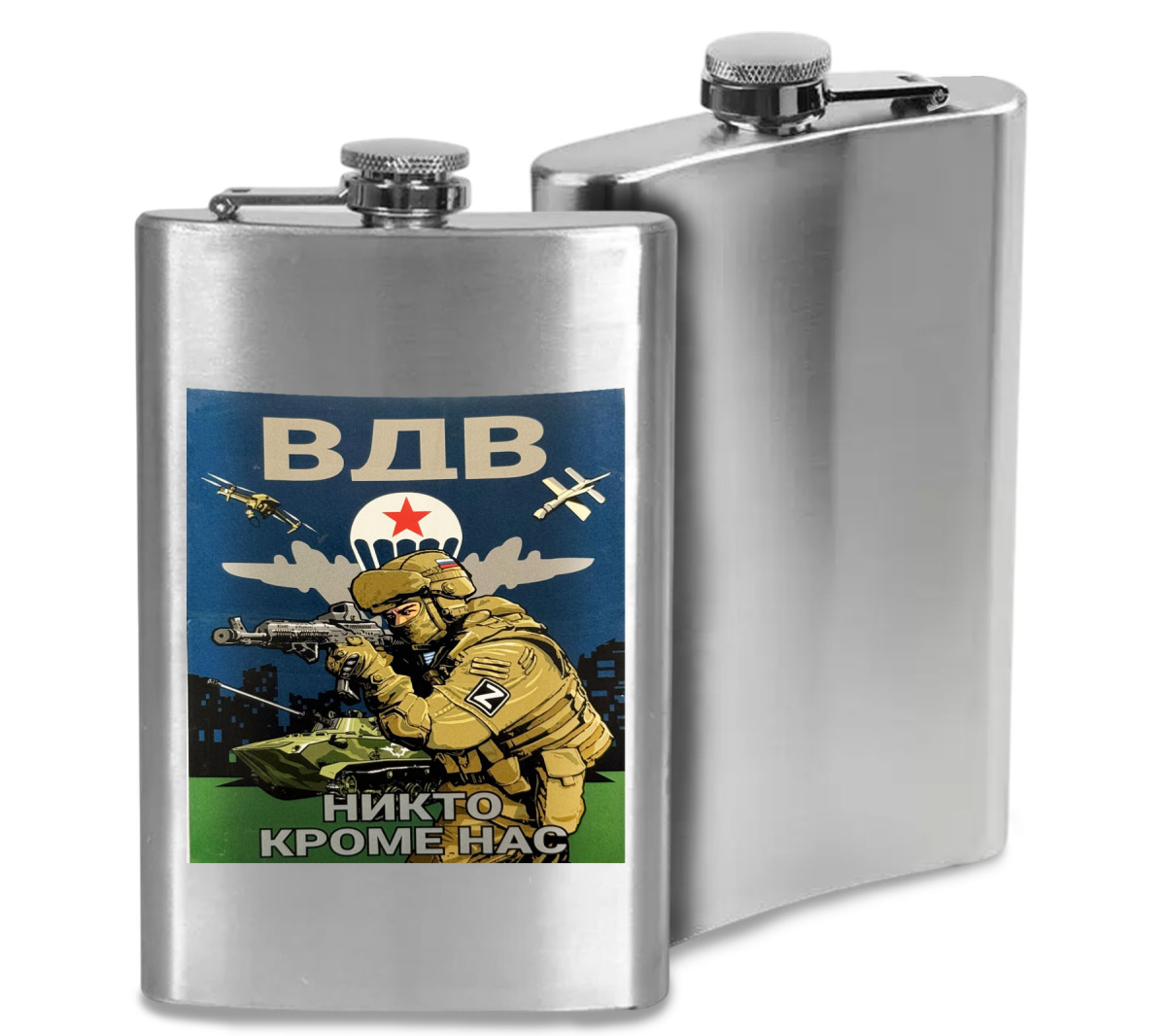 Карманная фляжка Воздушно-десантные войска с девизом можно купить от 800 руб., Армейские фляжки в Атрибутии с доставкой по РФ