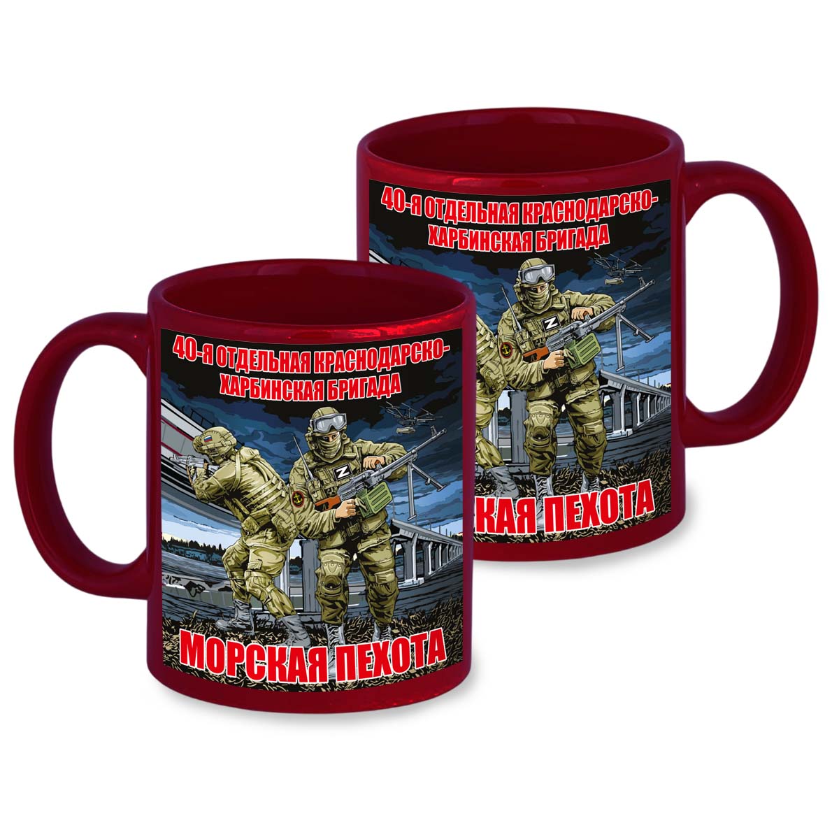 Заходите на сайт и забирайте Кружка 40 отдельная Краснодарско-Харбинская бригада Морской пехоты (Бордовая). Заказать можно 24/7. Оплата при получении, быстро и надёжно! Атрибутия