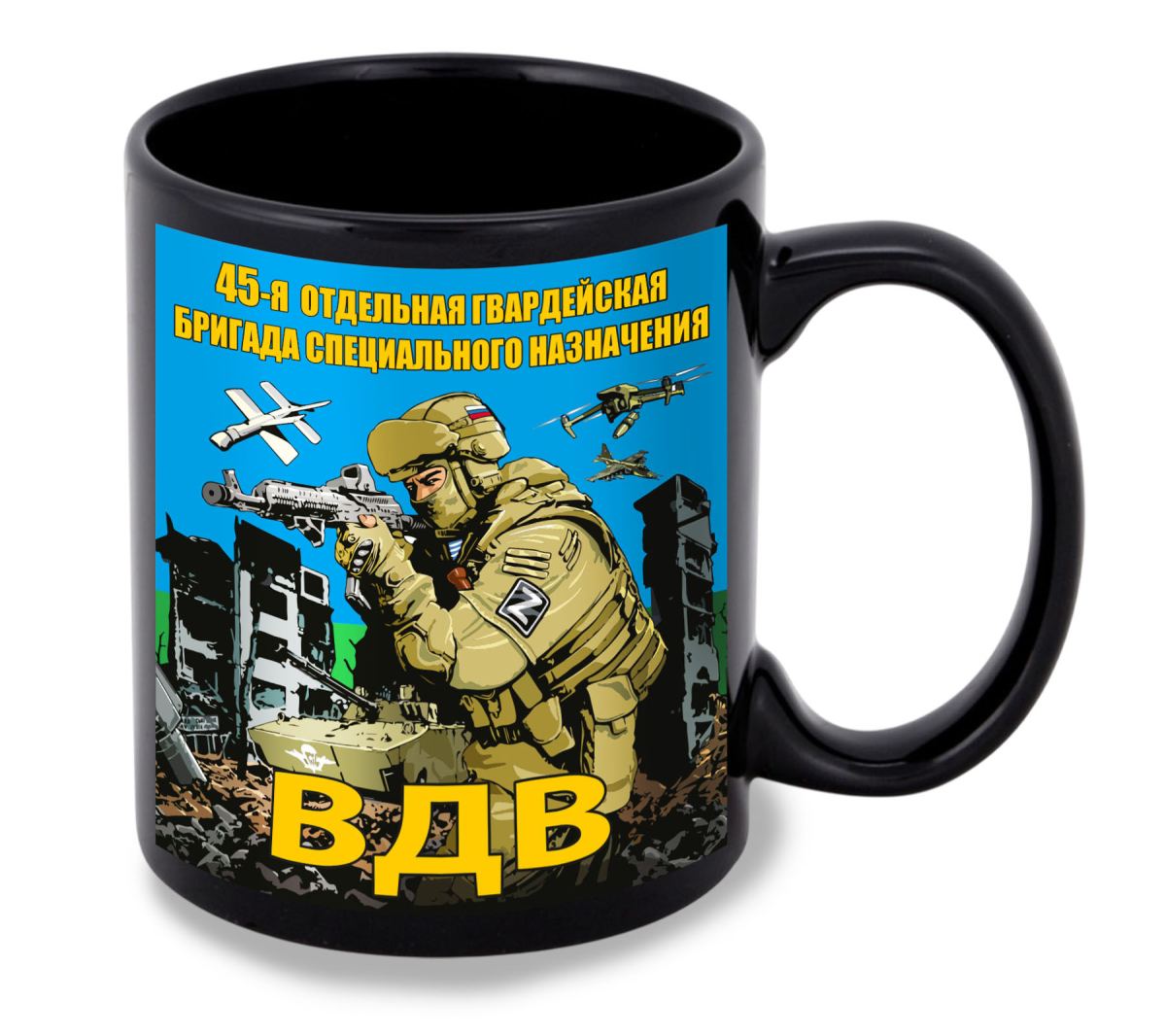 Кружка 45 отдельная гвардейская бригада специального назначения ВДВ (Черная)