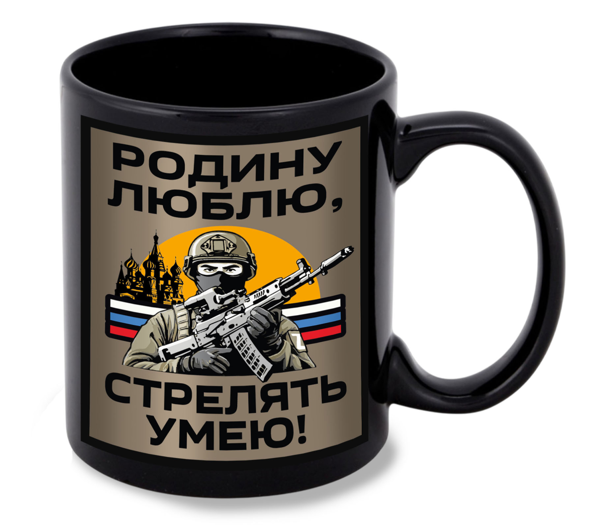 Купить Кружку Родину люблю, стрелять умею! (Черная)