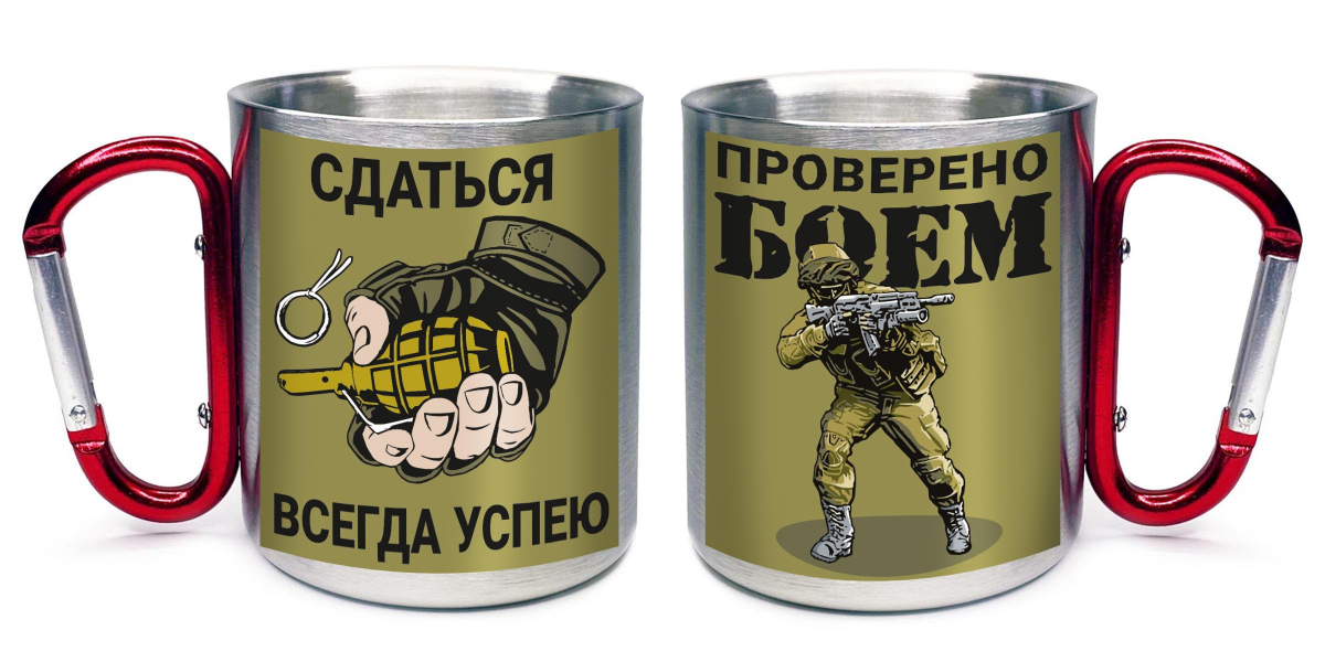 Заходите на сайт и забирайте Кружка с карабином Сдаться всегда успею- проверено боем. Заказать можно 24/7. Оплата при получении, быстро и надёжно! Атрибутия