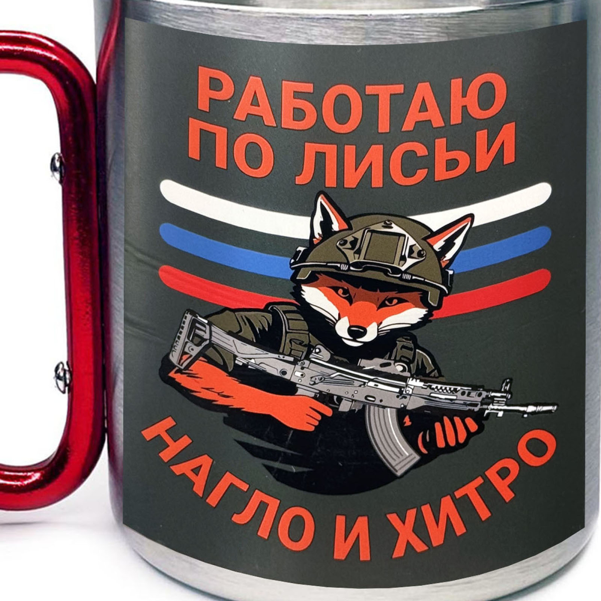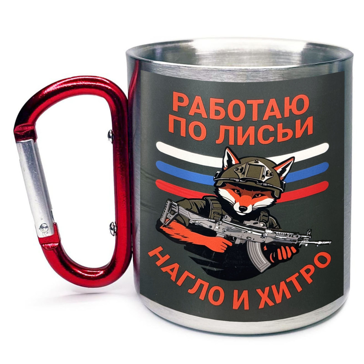 Заходите на сайт и забирайте Кружка с красным карабином Работаю по-лисьи – нагло и хитро. Заказать можно 24/7. Оплата при получении, быстро и надёжно! Атрибутия