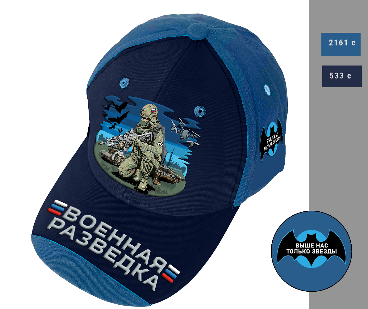 Купить Мужскую кепку с вышивкой Военная разведка РФ (Сине-черная)