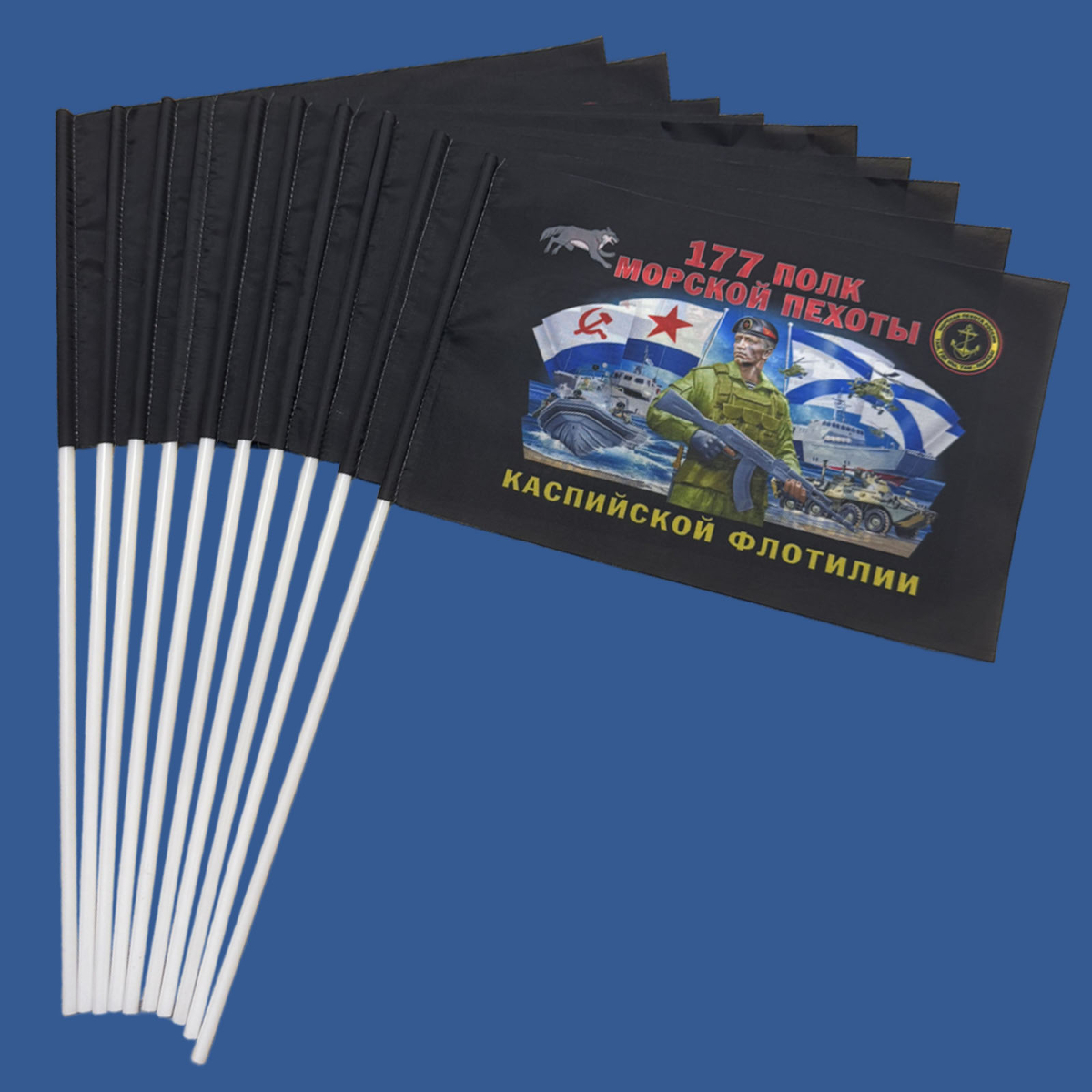 Купить Набор флажков 177 полк Морской пехоты (Каспийская флотилия) (10 штук) в интернет-магазине. Доставка по РФ, Москве, Санкт-Петербургу и д.р. Работаем с 10 до 18. Магазин Атрибутия / atributia.ru