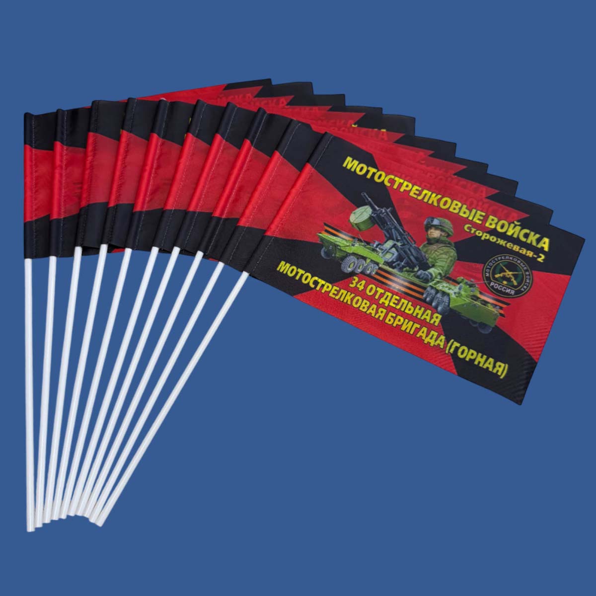 Купить Набор флажков 34 мотострелковая бригада (10 штук) в АТРИБУТИИ. Доставка по РФ, Москве, Санкт-Петербургу и д.р. Работаем с 10 до 18. Интернет-Магазин