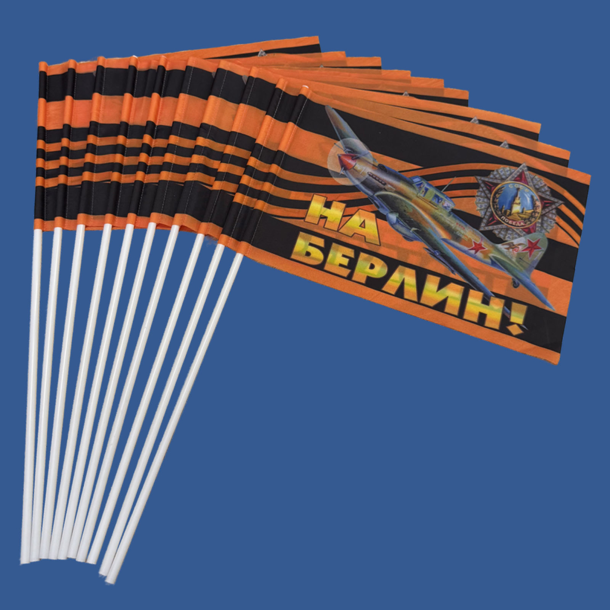 Купить Набор георгиевских флажков На Берлин! Штурмовик Ил-2(10 штук) в интернет-магазине. Доставка по РФ, Москве, Санкт-Петербургу и д.р. Работаем с 10 до 18. Магазин Атрибутия / atributia.ru
