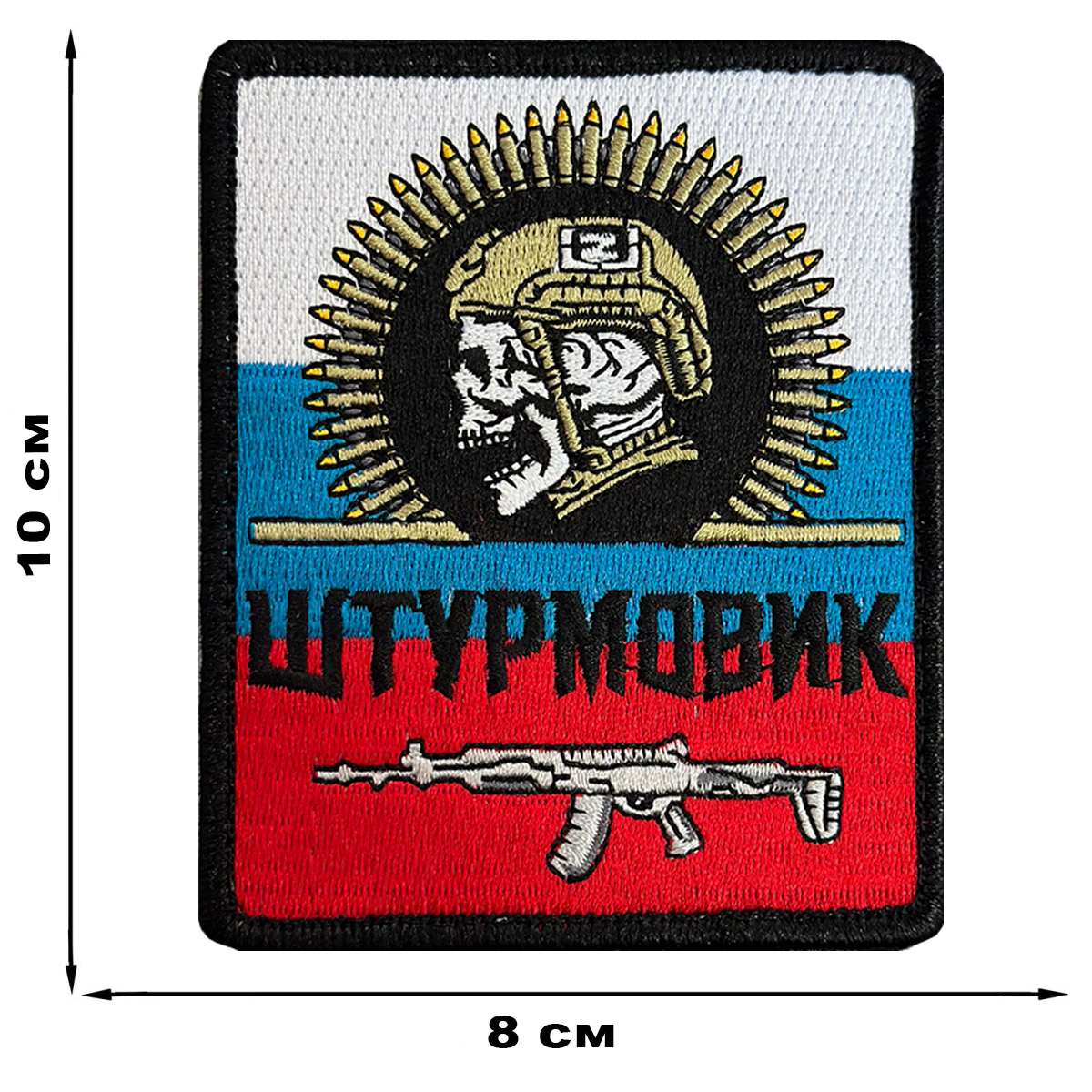 Заказать Нашивка Штурмовик на триколоре РФ (10х8см) в Атрибутии (надёжный магазин, много отзывов, оплата при получении почте РФ)