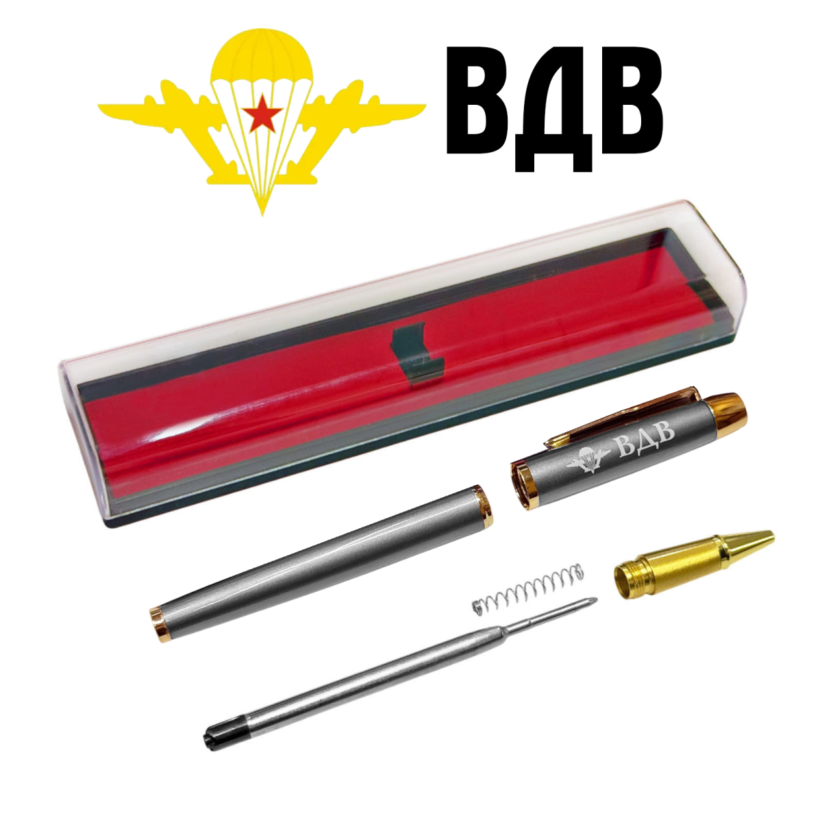 Закажите Подарочная ручка с эмблемой ВДВ в футляре и др. Подарочные ручки. Цена начинается от 600 руб. — доставка по РФ 1-м классом. тел. 7 (499) 677-51-28