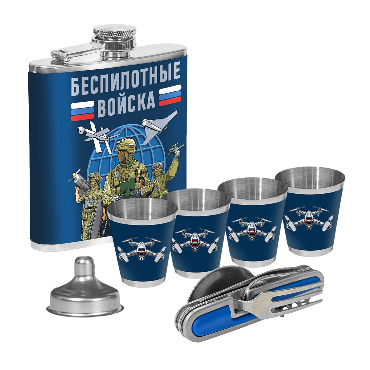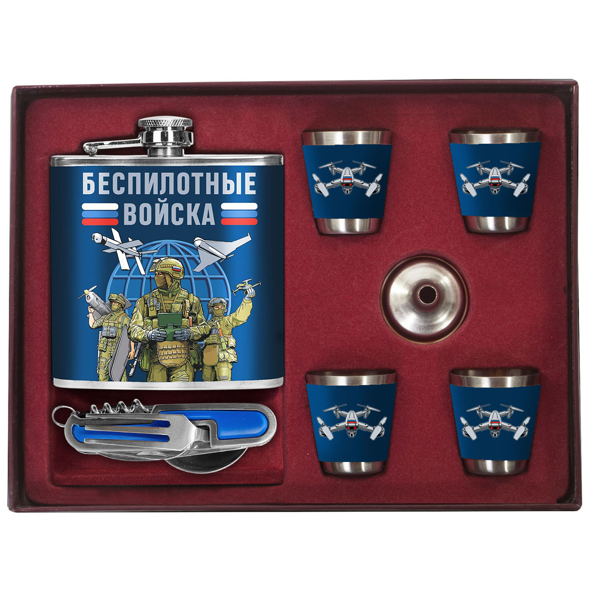 Подарочный набор Беспилотные войска (170 мл, 4х50 мл) можно купить от 3 000 руб., Армейские фляжки в Атрибутии с доставкой по РФ