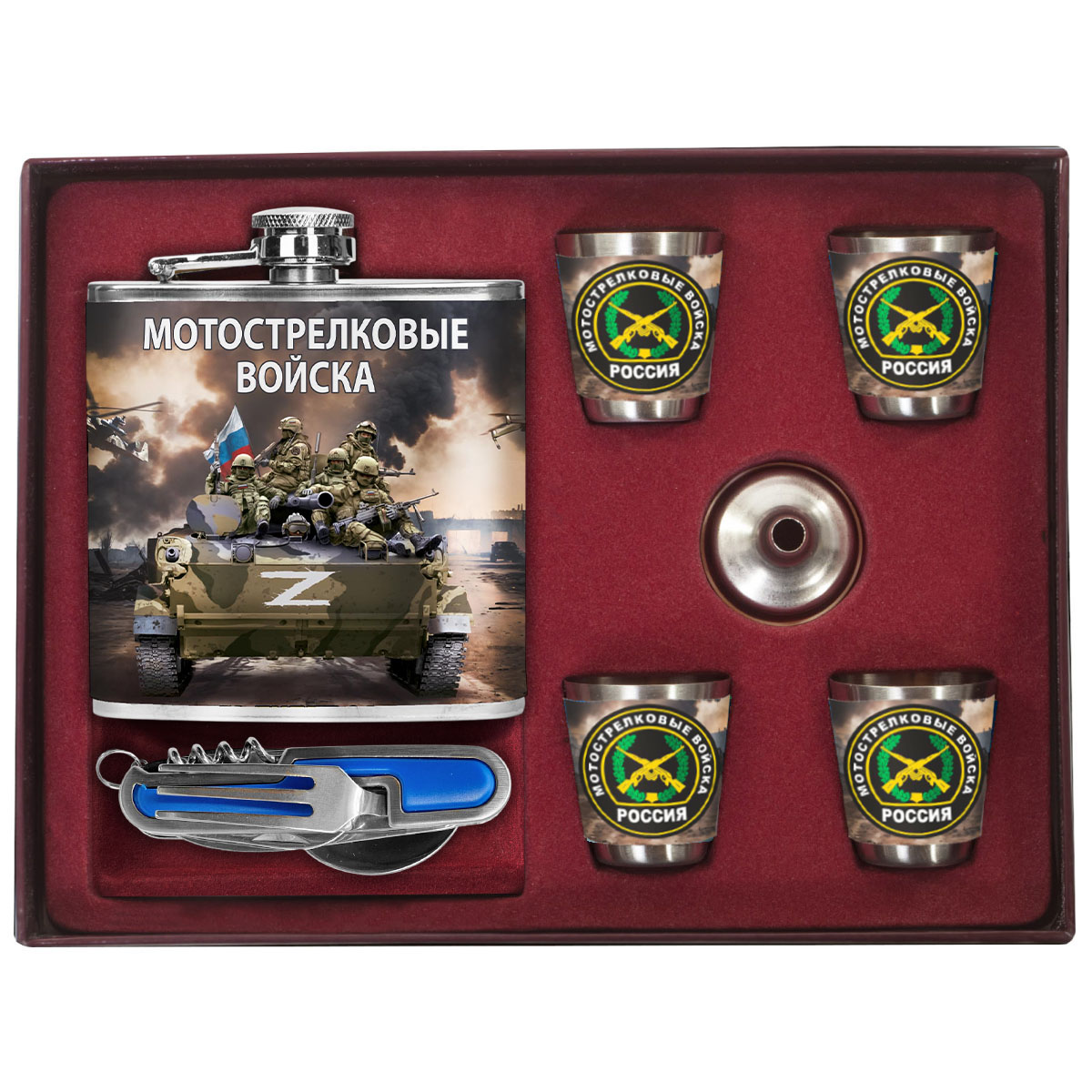 Подарочный набор Мотострелковые войска (170 мл, 4х50 мл) можно купить от 3 000 руб., Армейские фляжки в Атрибутии с доставкой по РФ