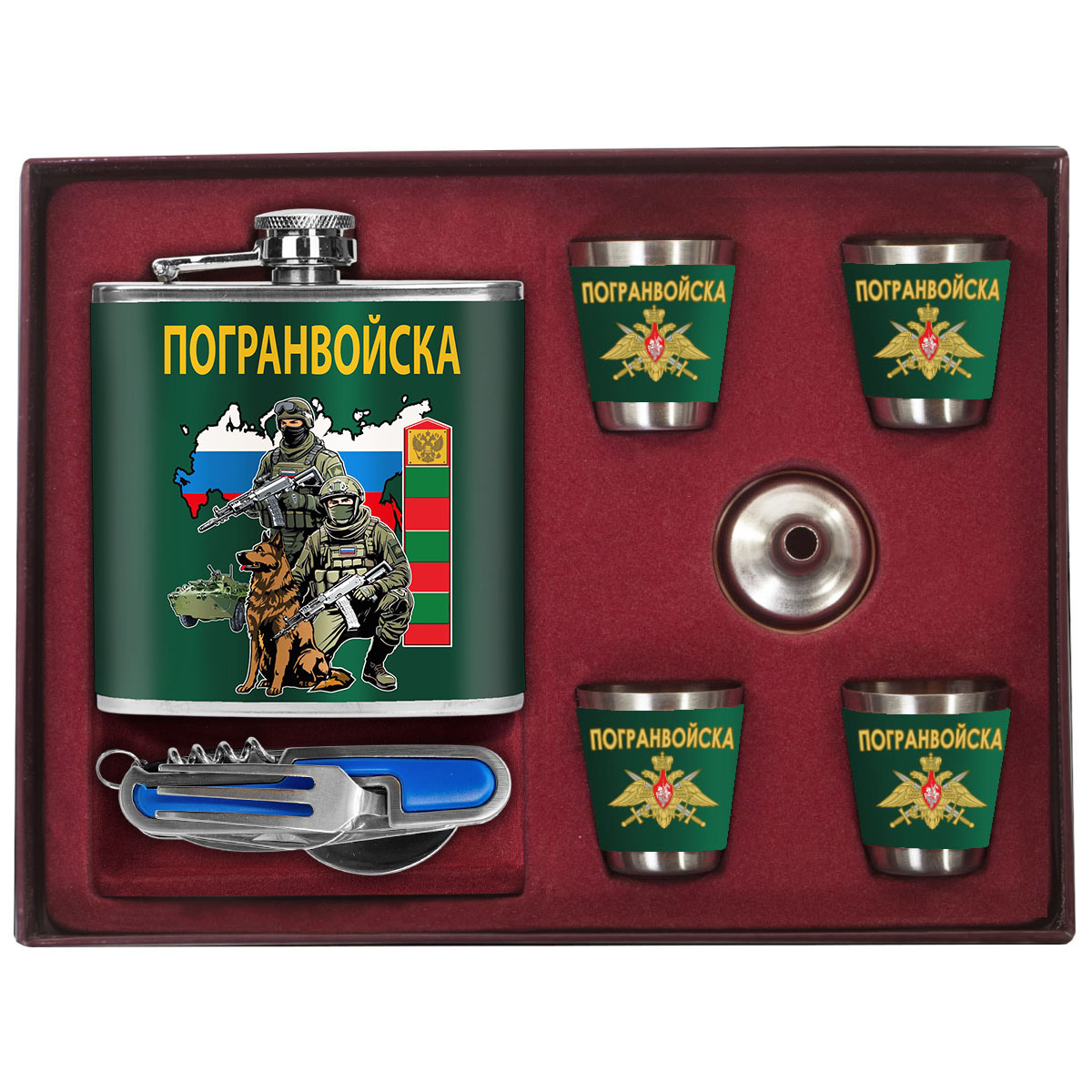Подарочный набор Погранвойска (170 мл, 4х50 мл) можно купить от 3 000 руб., Армейские фляжки в Атрибутии с доставкой по РФ