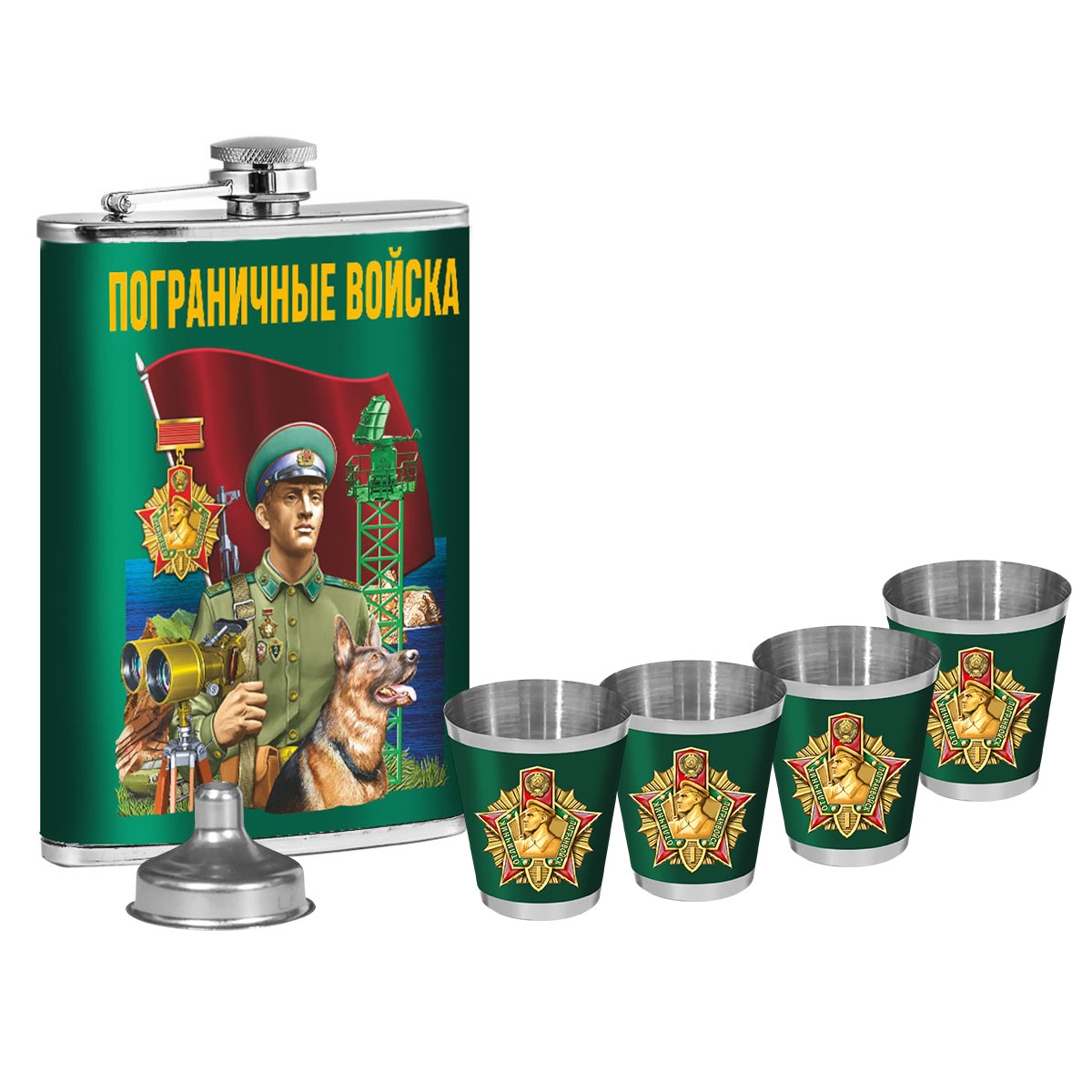 Подарочный набор с фляжкой и стопками Пограничные войска (260 мл, 4х50 мл) можно купить от 2 500 руб., Армейские фляжки в Атрибутии с доставкой по РФ