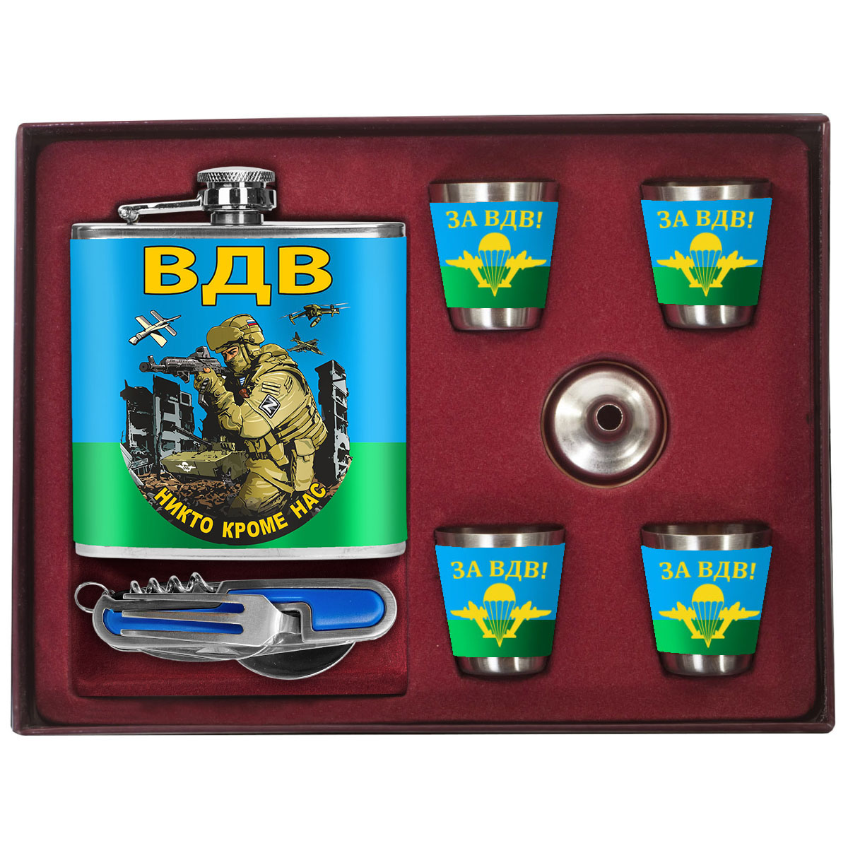 Подарочный набор ВДВ Никто кроме нас (260 мл, 4х50 мл) можно купить от 3 000 руб., Армейские фляжки в Атрибутии с доставкой по РФ