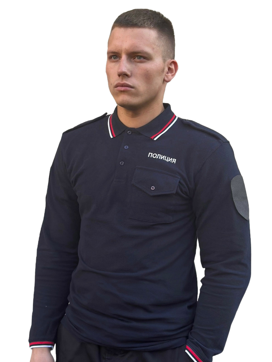 Купить Поло Полиция с длинным рукавом надпись на груди (Черная) в Интернет-Магазине АТРИБУТИЯ (Доставка по Москве, Спб и всей России). Оплата на почте, при получении +7 (499) 677-51-28 c 10 до 18 по Москве