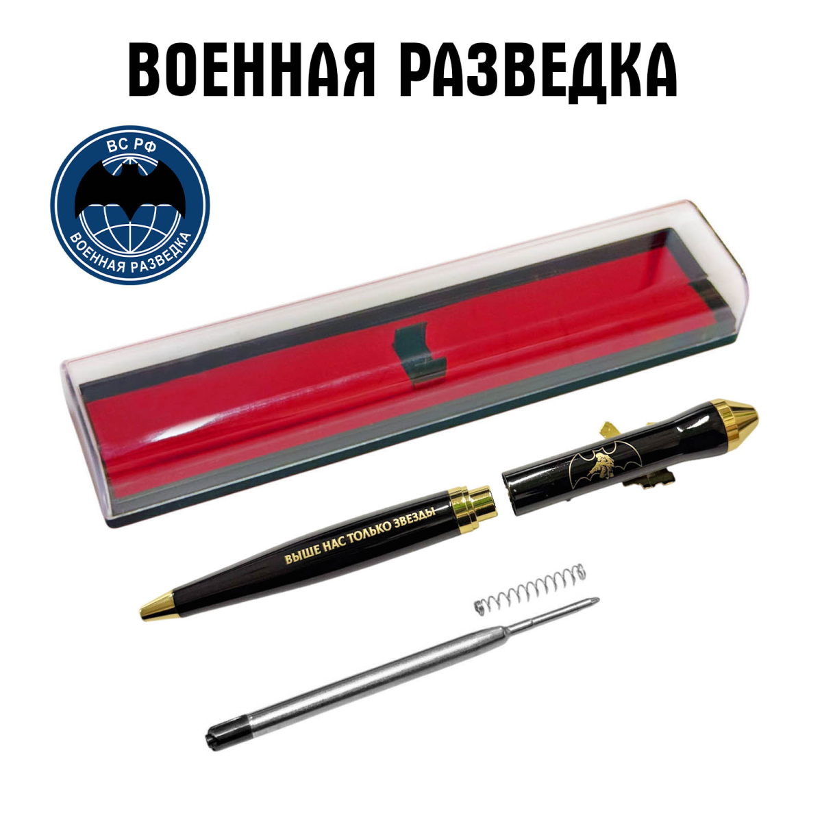 Ручка патрон Военная разведка Выше нас только звезды с автоматом в футляре