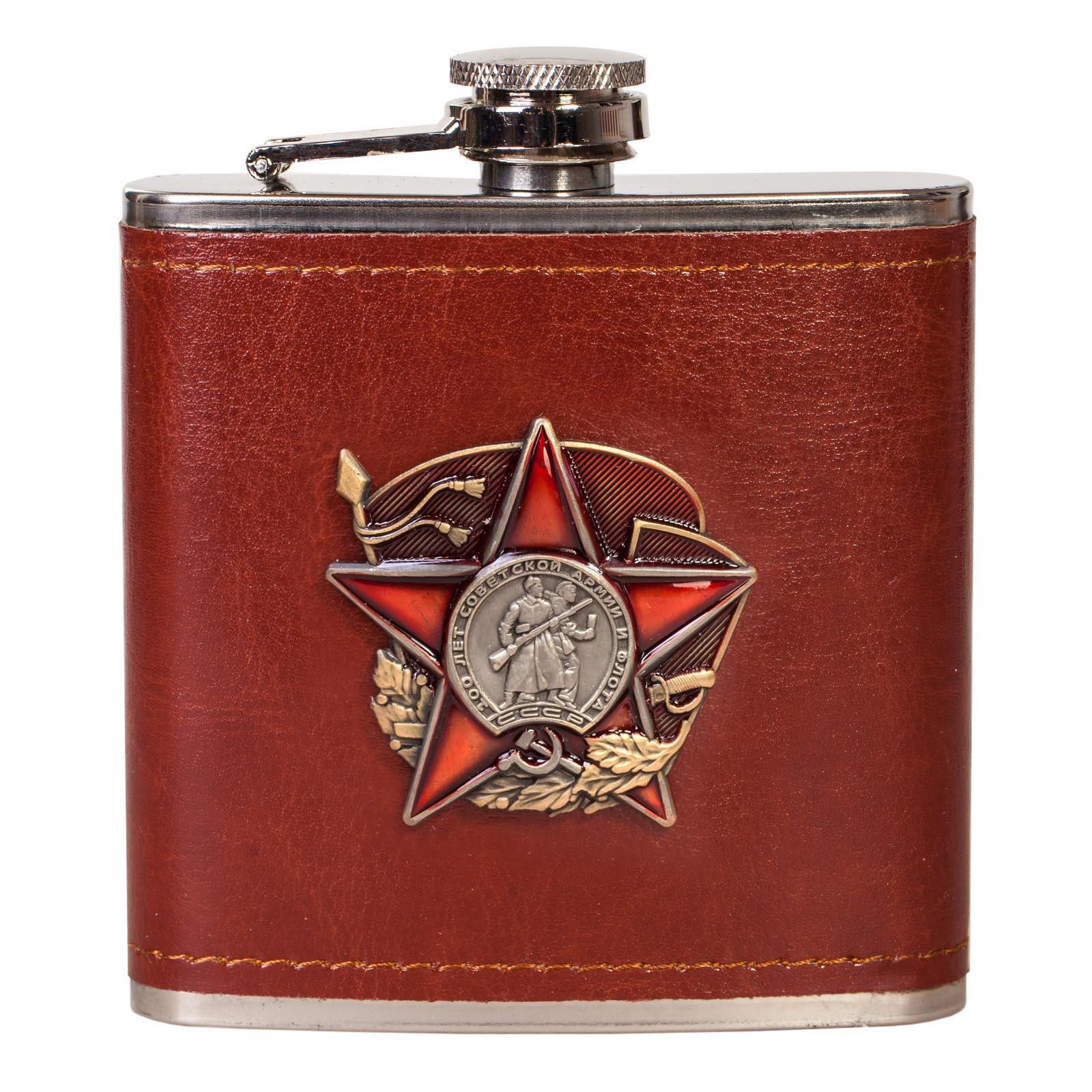 Сувенирная фляжка в чехле 100 лет Советской Армии и Флота можно купить от 900 руб., Армейские фляжки в Атрибутии с доставкой по РФ