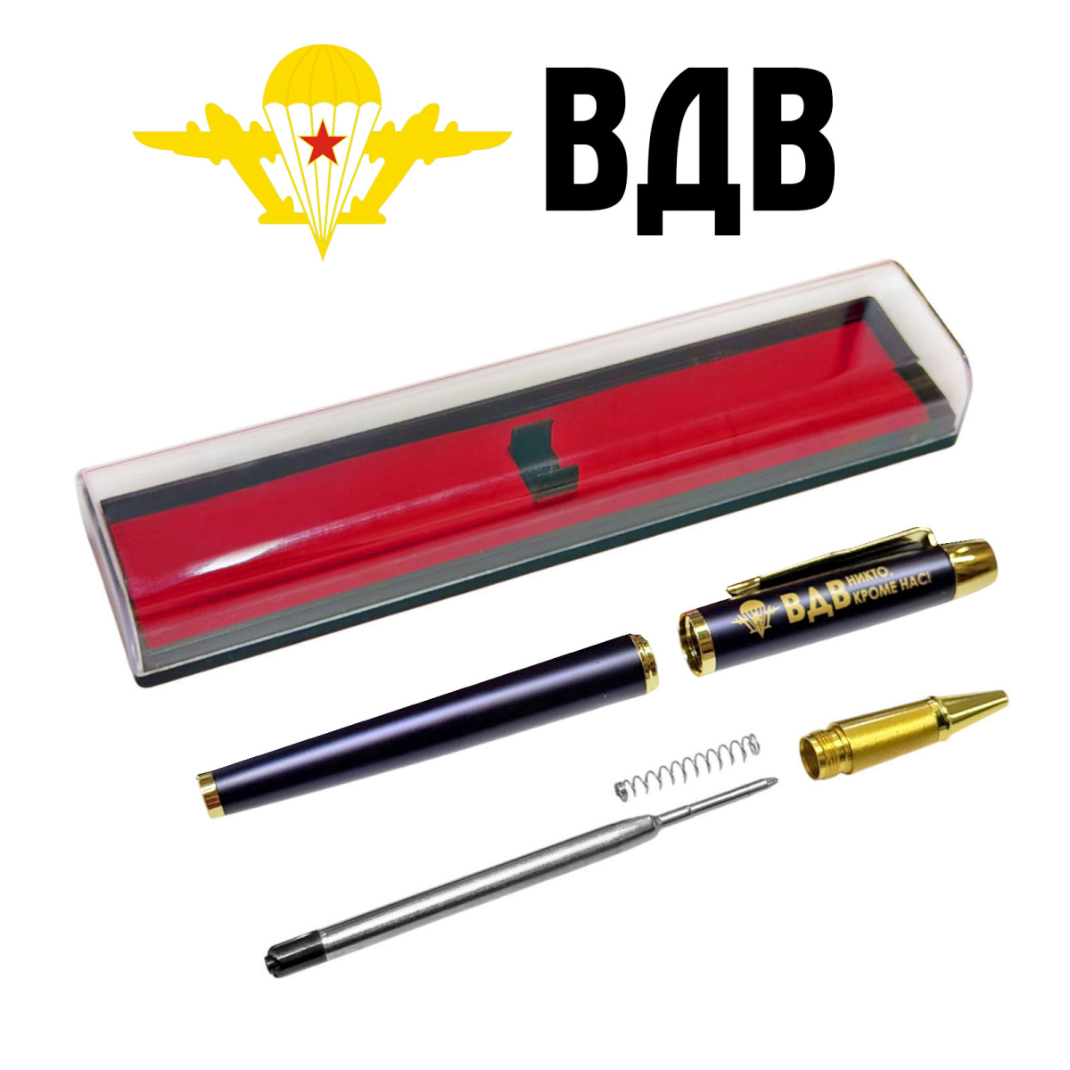 Закажите Сувенирная ручка ВДВ Никто,кроме нас! в футляре и др. Подарочные ручки. Цена начинается от 600 руб. — доставка по РФ 1-м классом. тел. 7 (499) 677-51-28