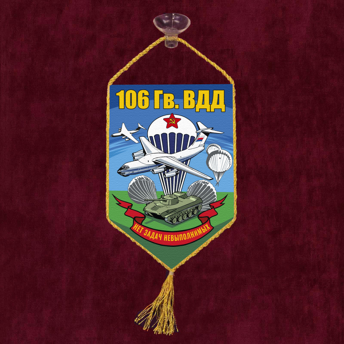 Смотрите Вымпел 106 гв. ВДД Нет задач невыполнимых на присоске в интернет магазине Атрибутия от 500 руб.. Доставляем по РФ (1-й класс, быстро). тел. 84996775128