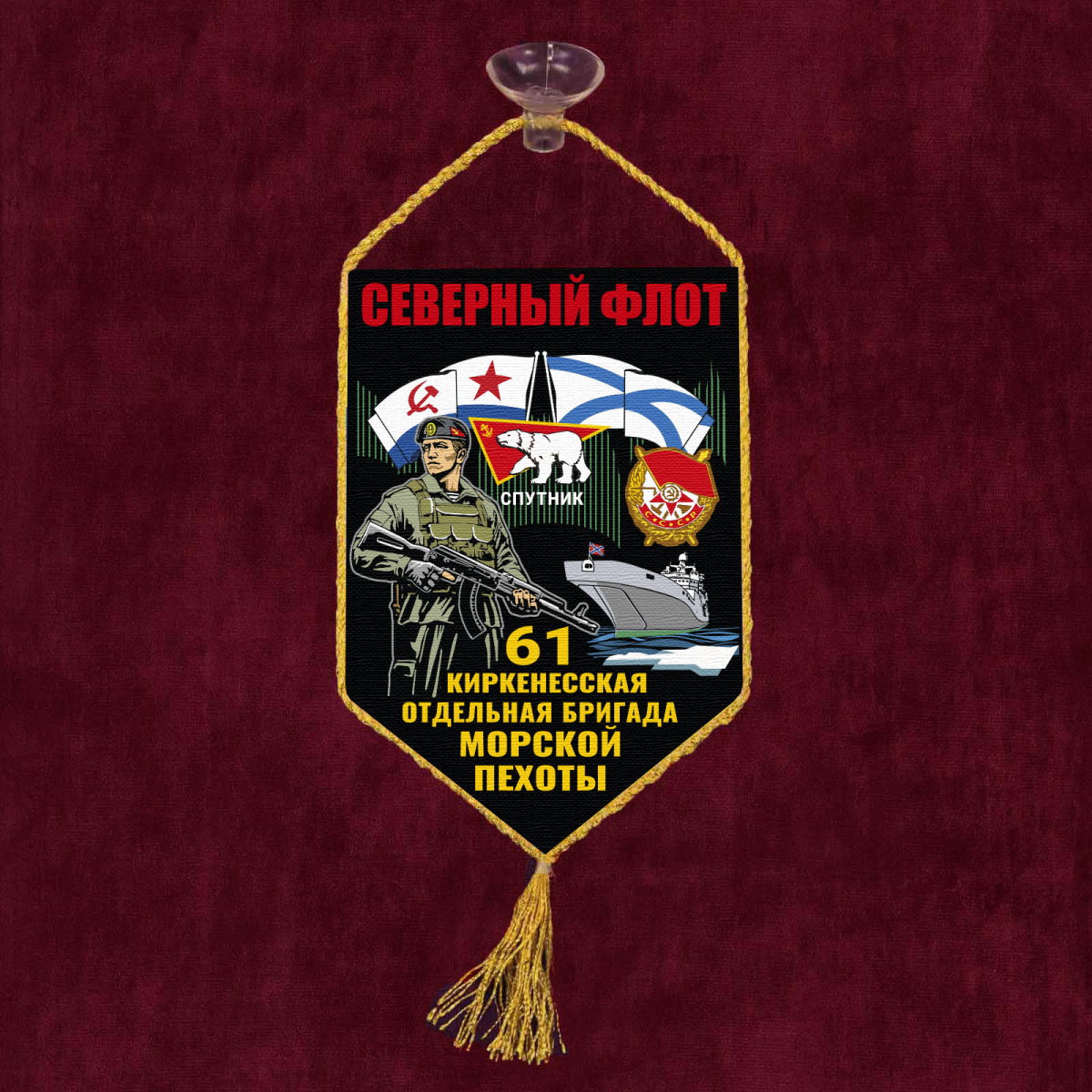 Смотрите Вымпел 61 Киркенесская отдельная бригада Морской пехоты – Северный флот на присоске в интернет магазине Атрибутия от 500 руб.. Доставляем по РФ (1-й класс, быстро). тел. 84996775128