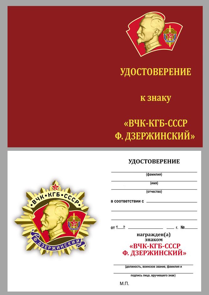 Купить Знак ВЧК-КГБ-СССР с Дзержинским в наградной коробке с удостоверением в комплекте в АТРИБУТИИ, и другие Медали и нагрудные знаки. Цены — от 1 065 руб. — Доставка по РФ. Оплата наложенным платежом на почте (при получении)